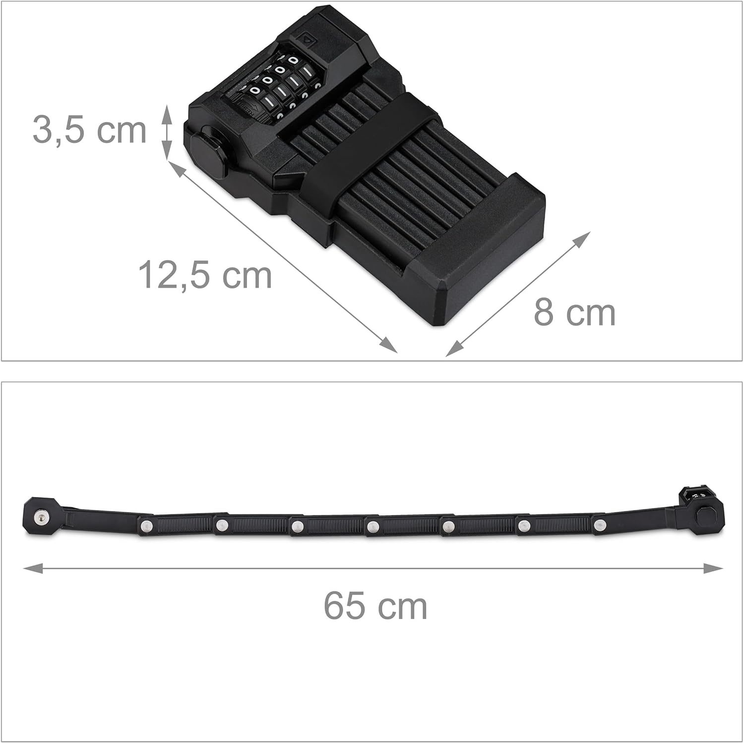 Relaxdays Faltschloss Fahrrad, Halterung für Rahmen, 65 cm, Gliederschloss für E-Bike, MTB, Rennrad,