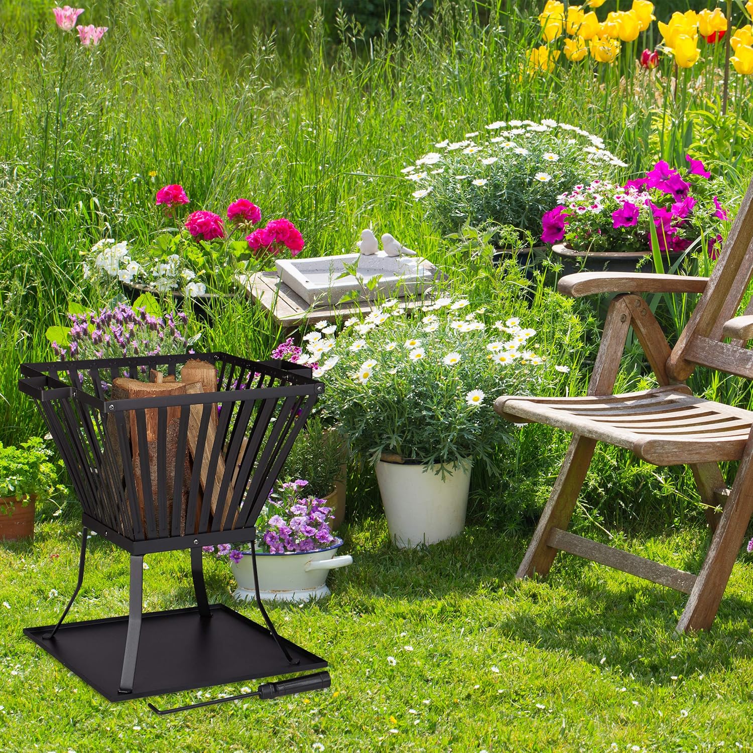 - Für Holz: Schöner Feuerkorb mit Unterlage und Schürhaken - Lagerfeuer auf Terrasse und Garten