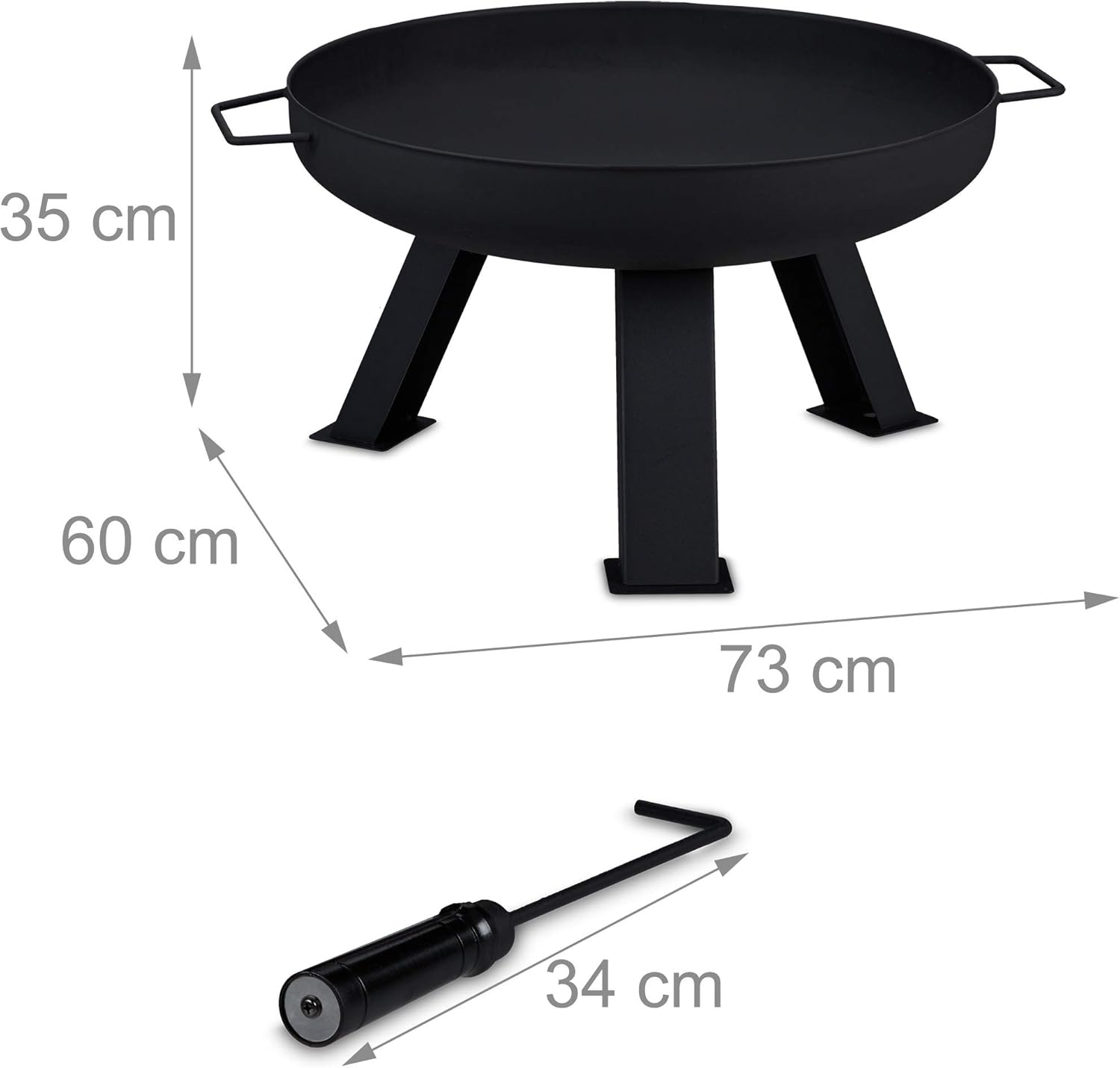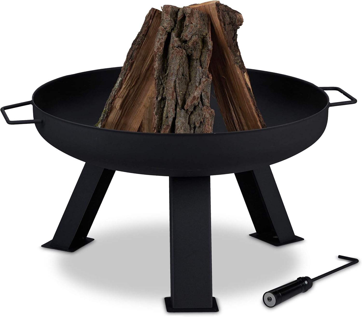 Relaxdays Feuerschale Durchmesser 60 cm, inkl. Schürhaken, Garten & Terrasse Feuerstelle, rund, Feue