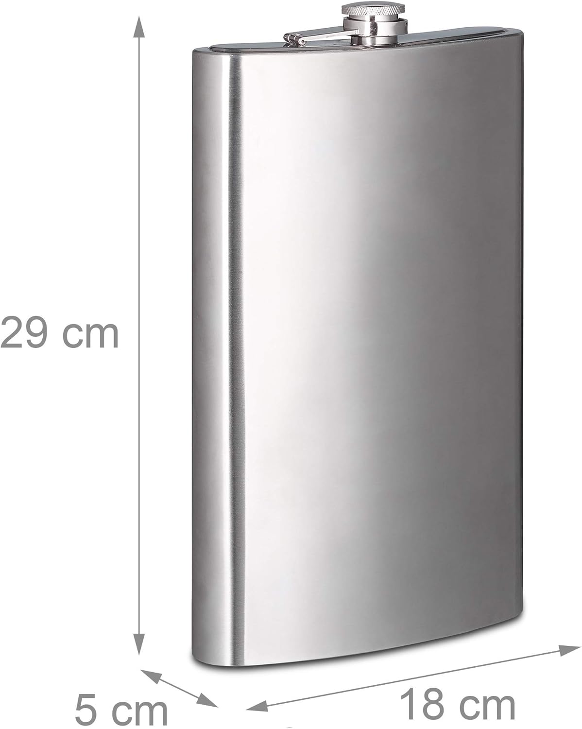 Relaxdays Flachmann XXL aus Edelstahl, Riesen Flachmann mit 1,8l Fassungsvolumen, klassisches Flachm