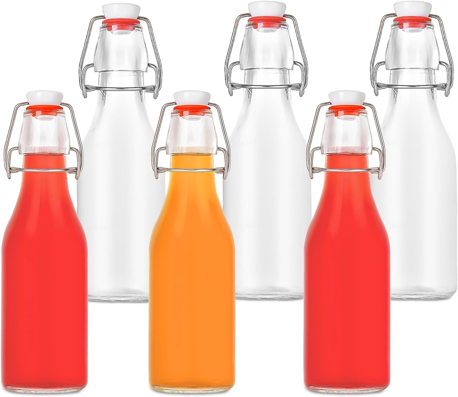 Relaxdays Flaschen zum Befüllen, 6er Set, 250 ml, Bügelverschluss, Glasflasche für Öl, Essig, Schnap