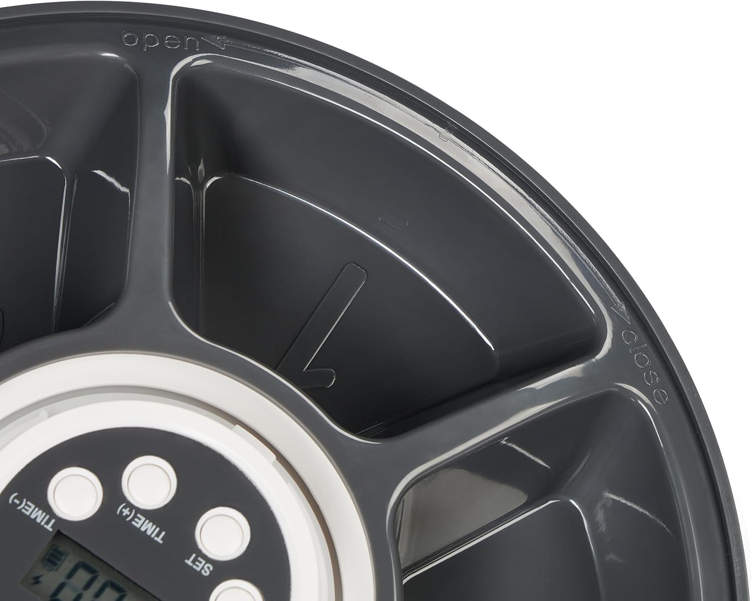 - Zeitgesteuert: Timer zählt die Zeit bis zur nächsten Fütterung herunter - Deckel offenbart Futter