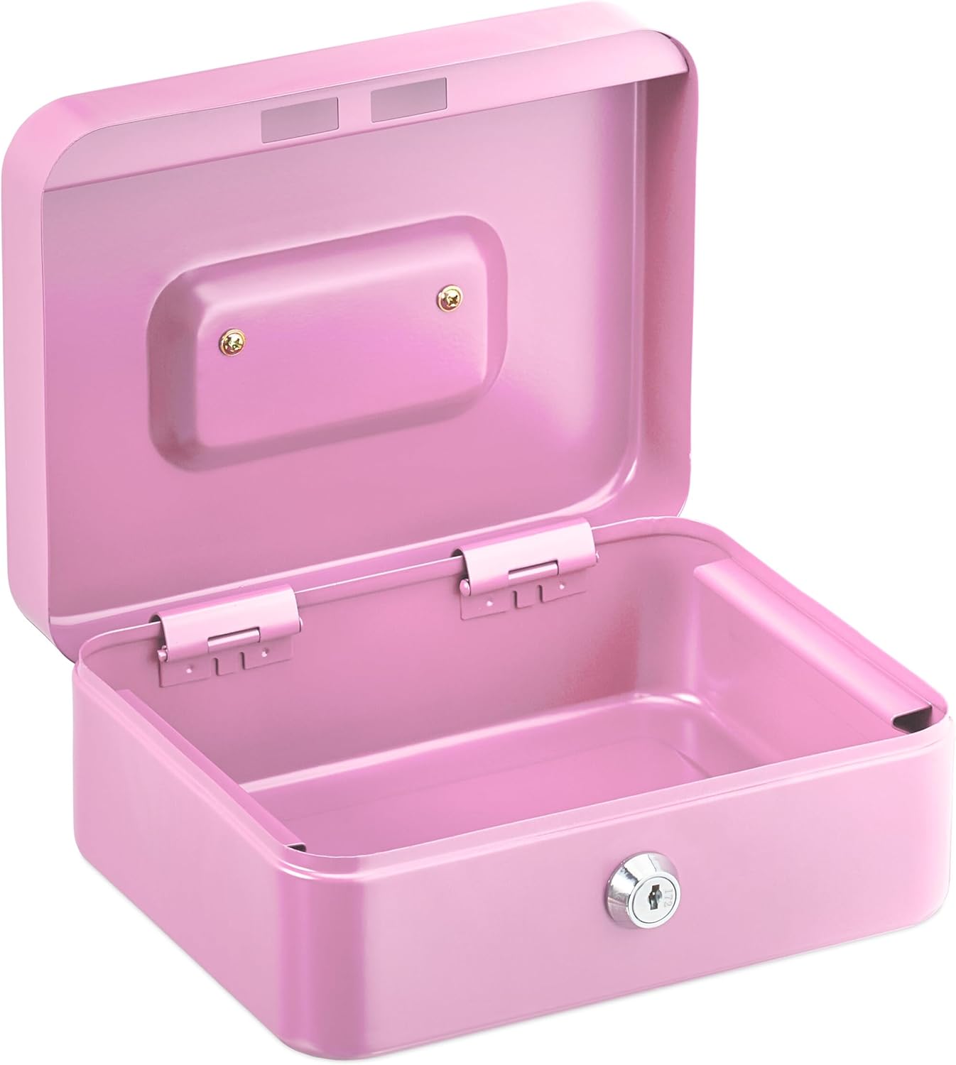 • Sicher: Abschliessbare Bargeldkasse in Pink mit Schloss und 2 Schlüsseln - Sichere Geldaufbewahrung