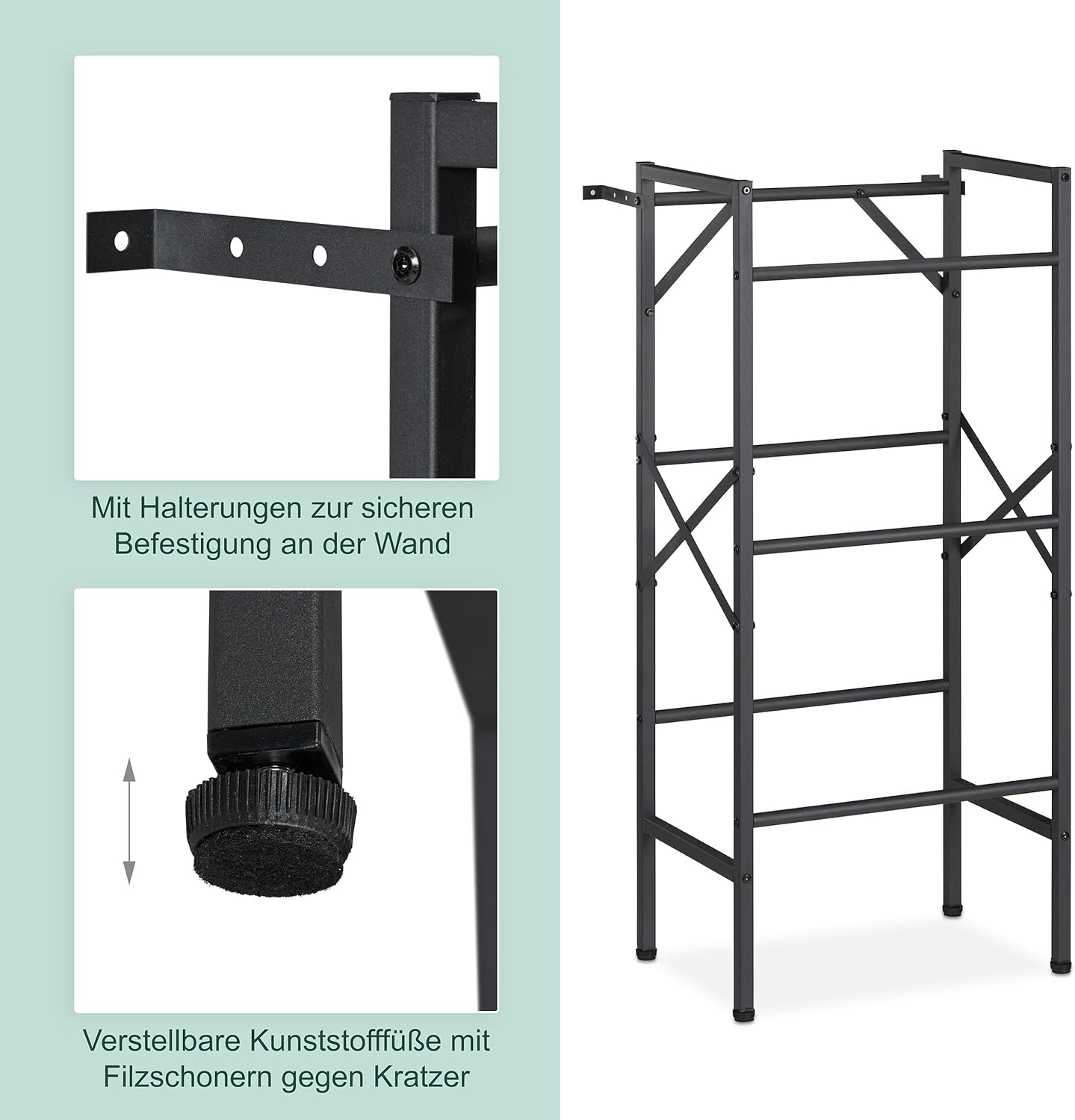 - Material: Kastenregal aus robustem, pulverbeschichtetem Stahl - Verstellbare Füsse mit Filzschonern