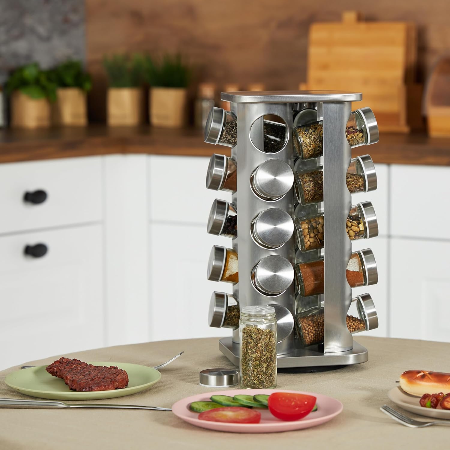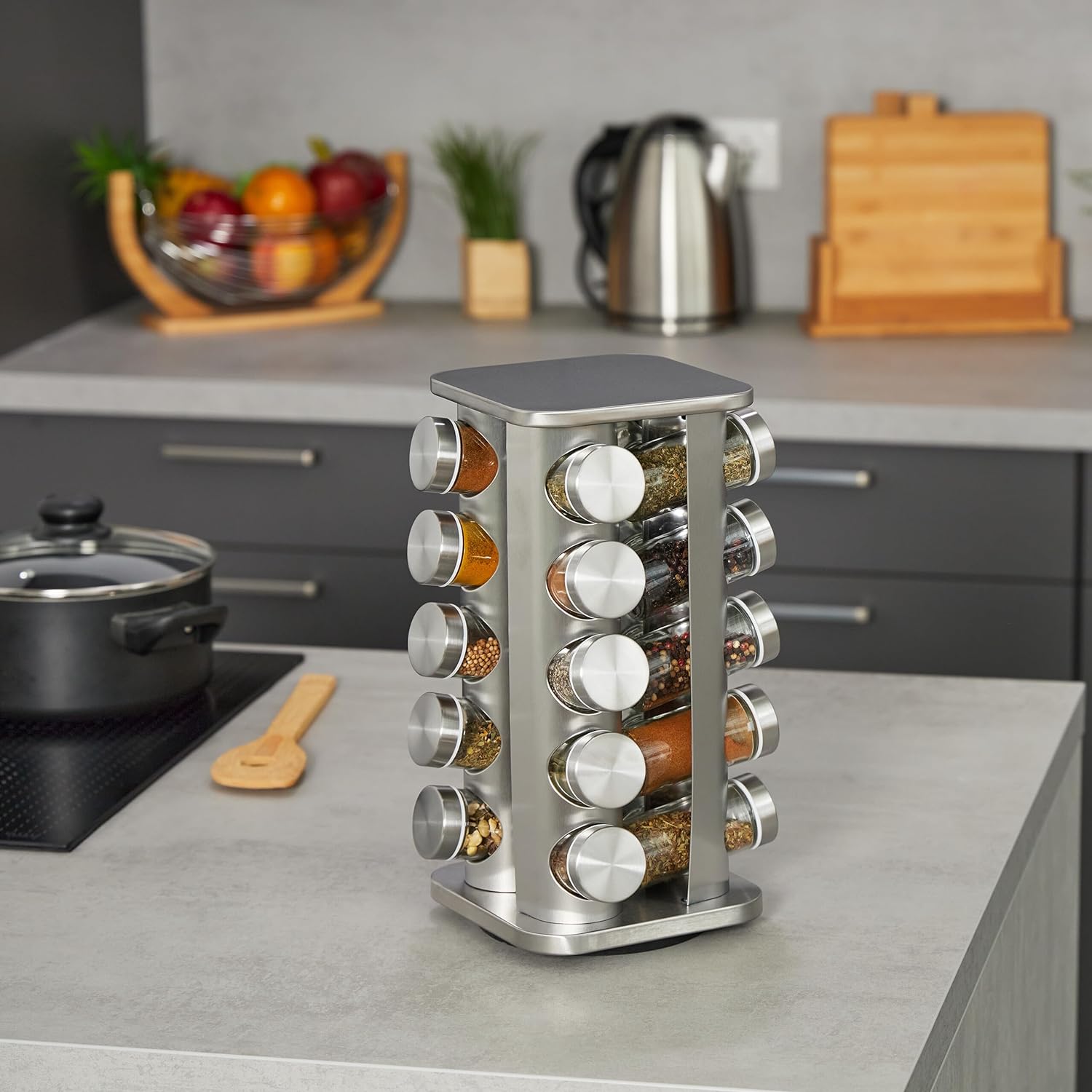 - Gewürzaufbewahrung: Gewürzkarussell für mehr Ordnung in der Gewürzsammlung - Inkl. 20 Gewürzgläser