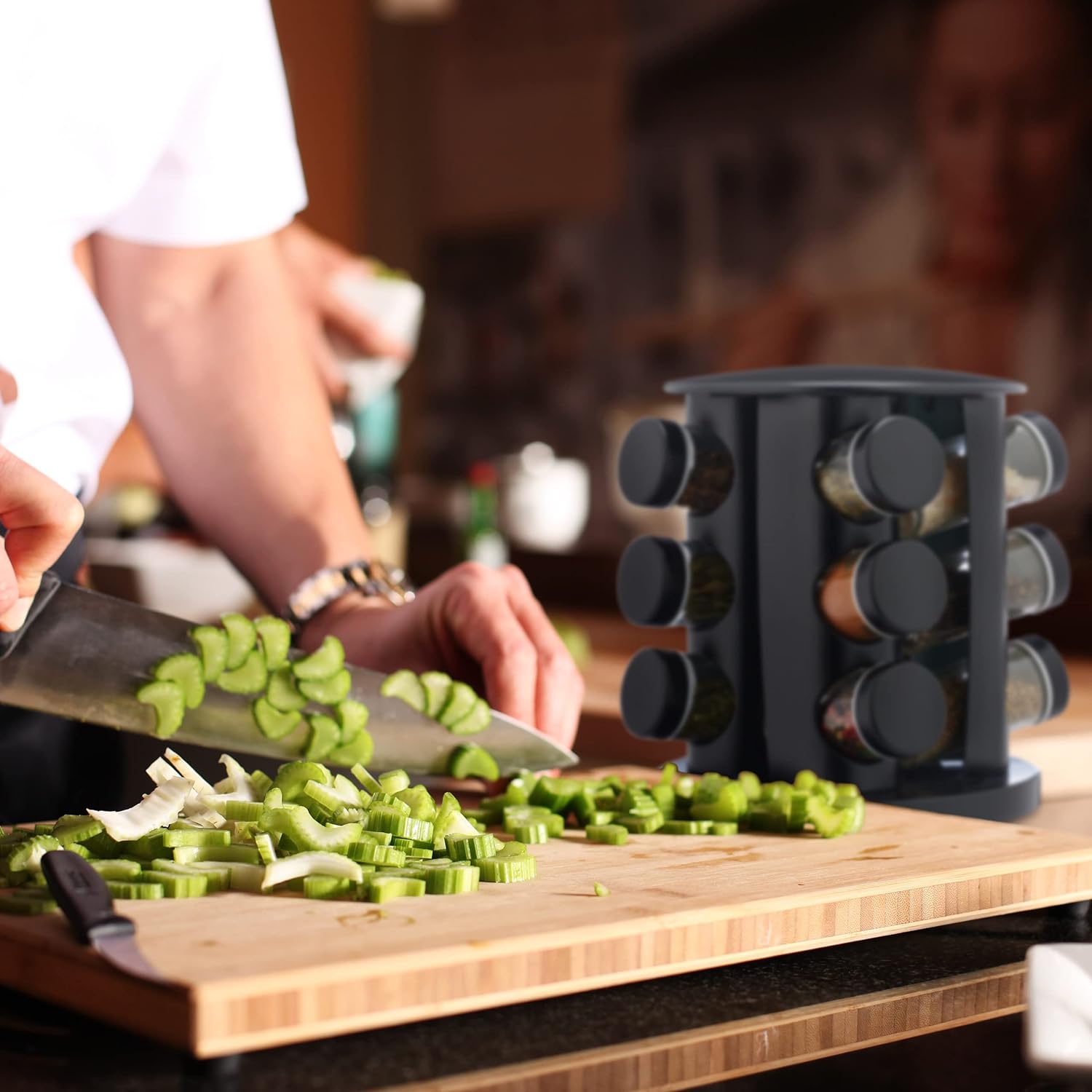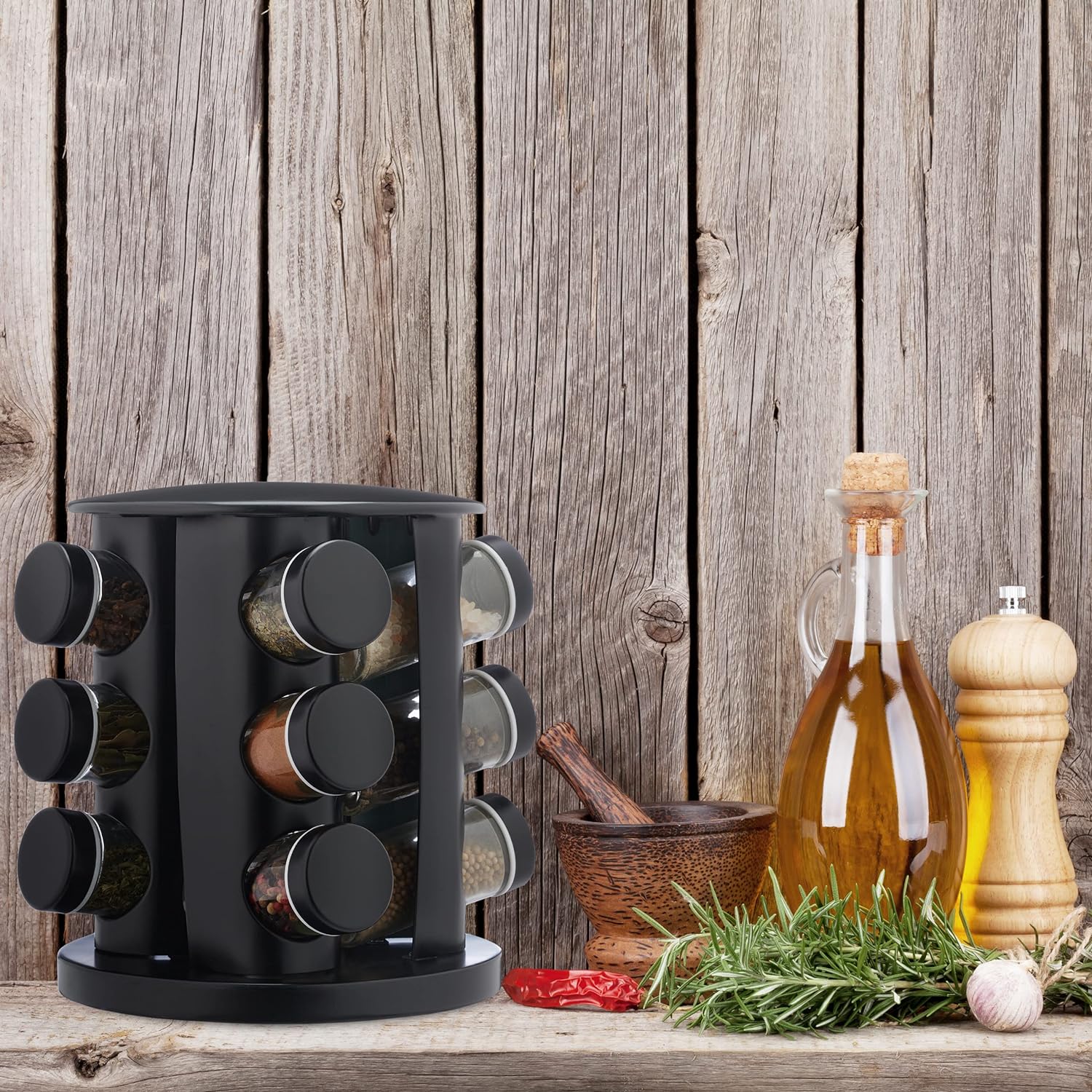 - Set: Freistehendes Gewürzkarussell mit 12 Gewürzdosen - Je 100 ml Fassungsvermögen - Mehr Ordnung