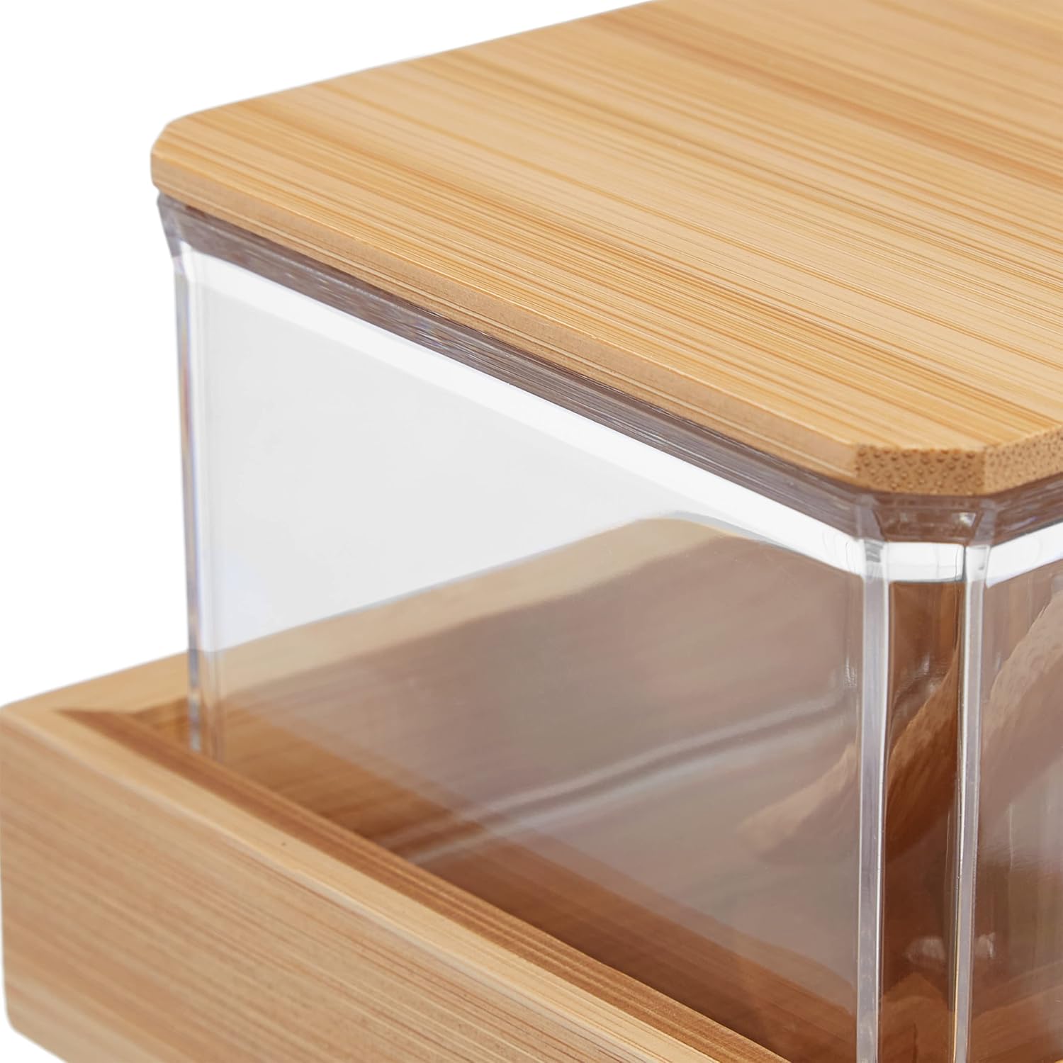 - Robust: Gewürzdosen aus transparentem Kunststoff - Deckel, Löffel und Tablett aus natürlichem Bambus