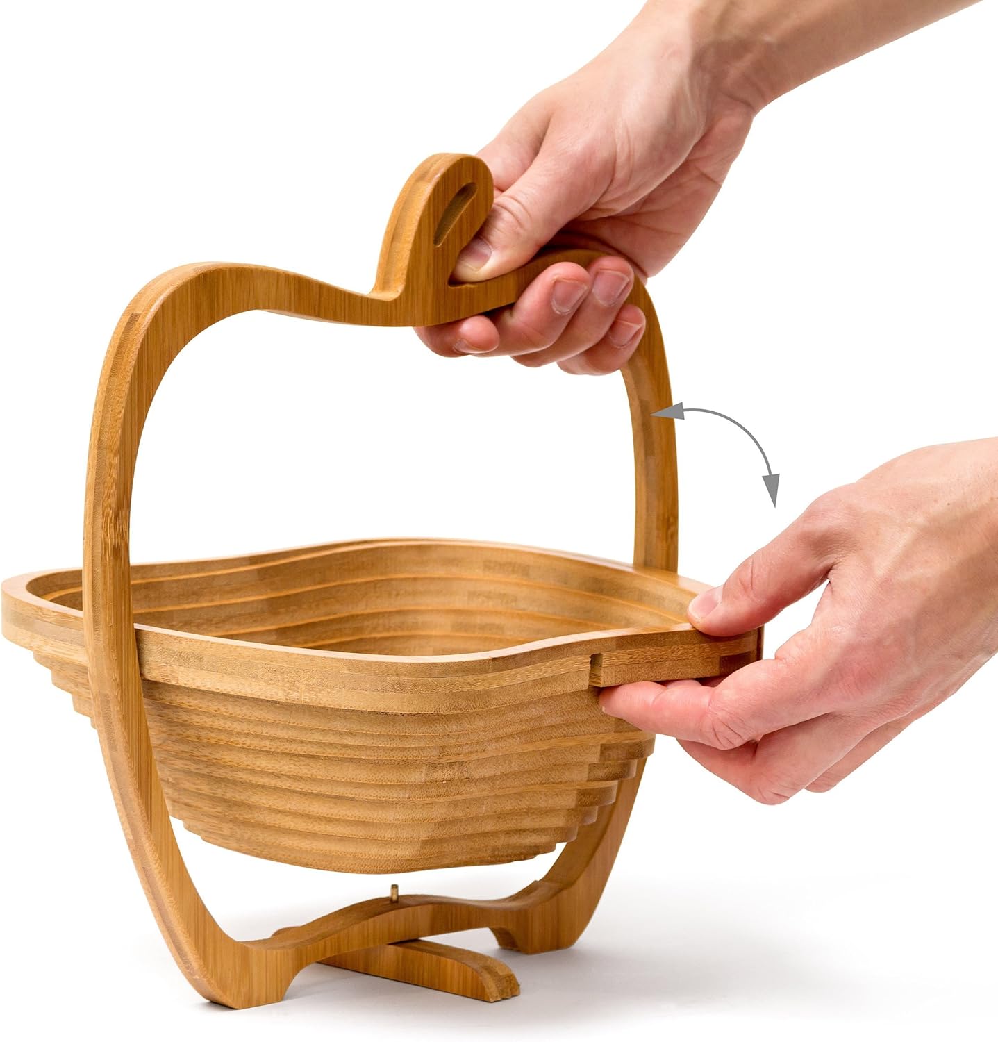 - Produkt 2: Der Korb überzeugt durch sein aussergewöhnliches Design, welches spiralförmig in den Bambus geschnitten ist. Ein wunderbarer Ziehharmonika-Effekt entsteht so, wenn Sie den Korb aufklappen