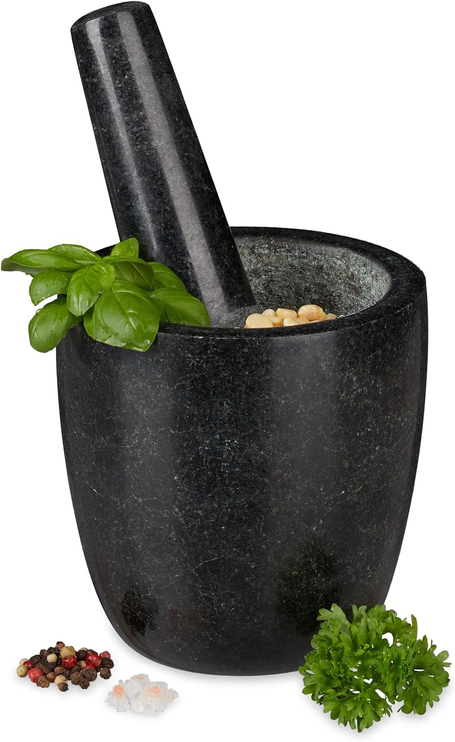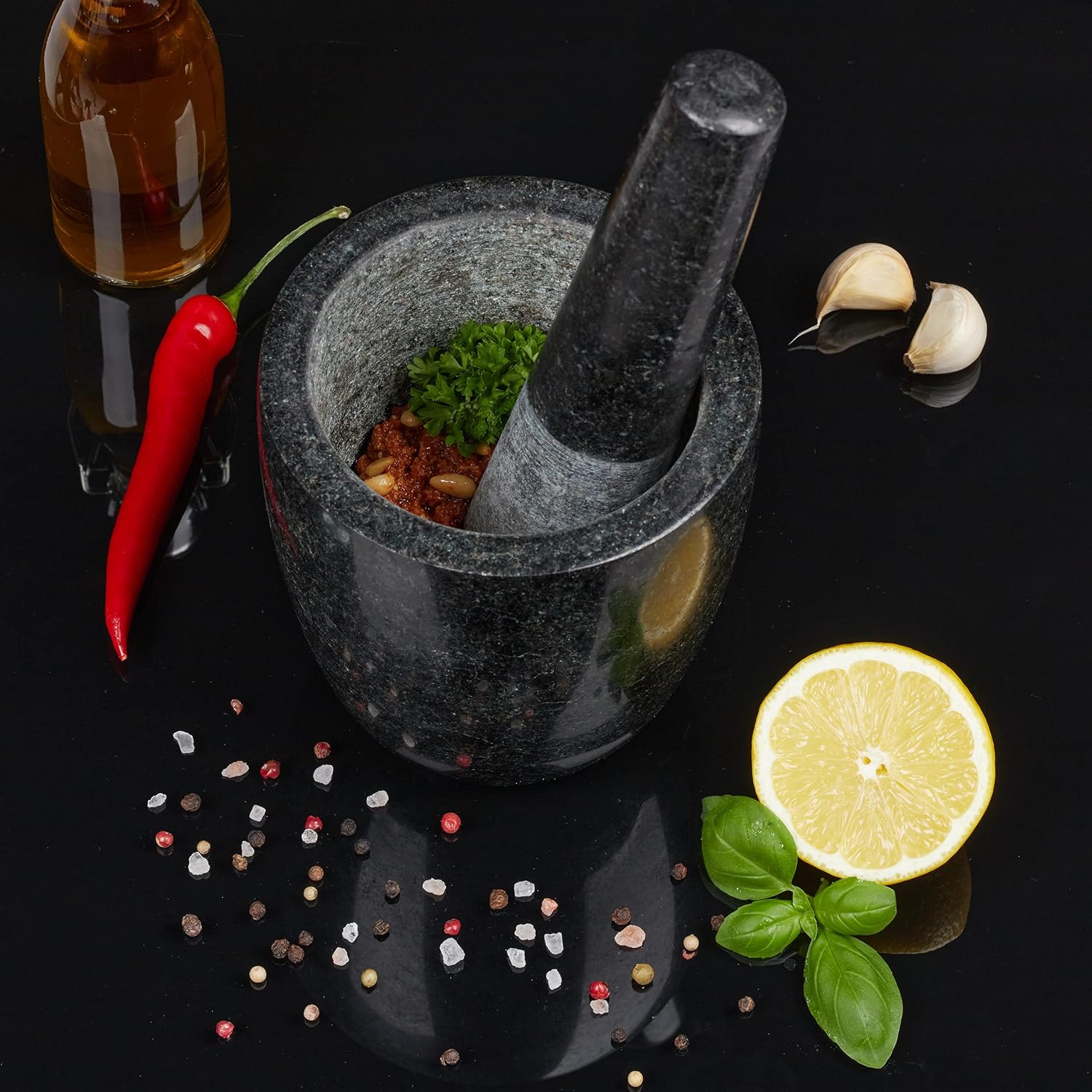 - Vielseitig: Der Granitmörser eignet sich u.a. für das Zerkleinern von Kräutern, Gewürzen und Nüssen