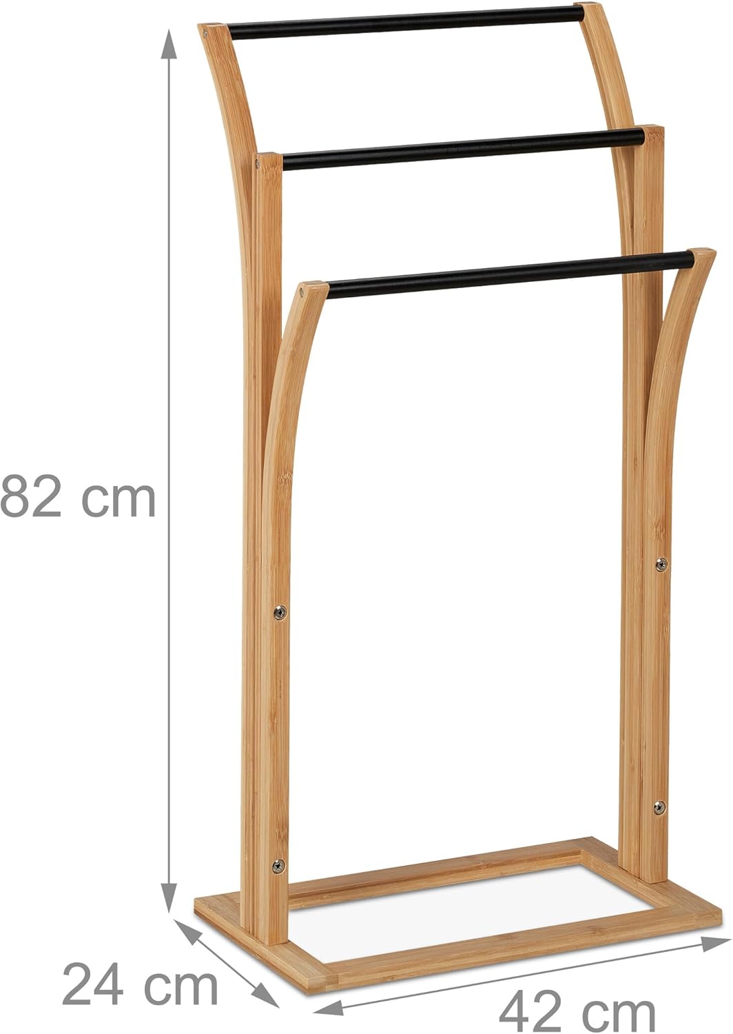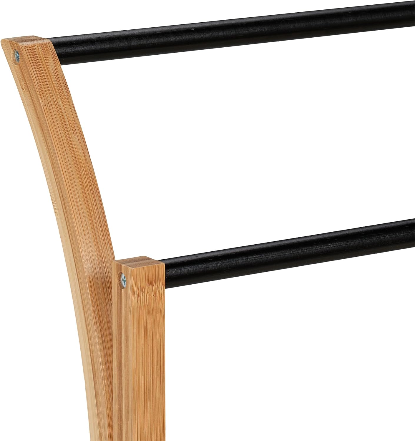 - Modern: Badehandtuchständer im zeitlosen Design - Natürliches Bambus-Gestell mit schwarzen Akzenten