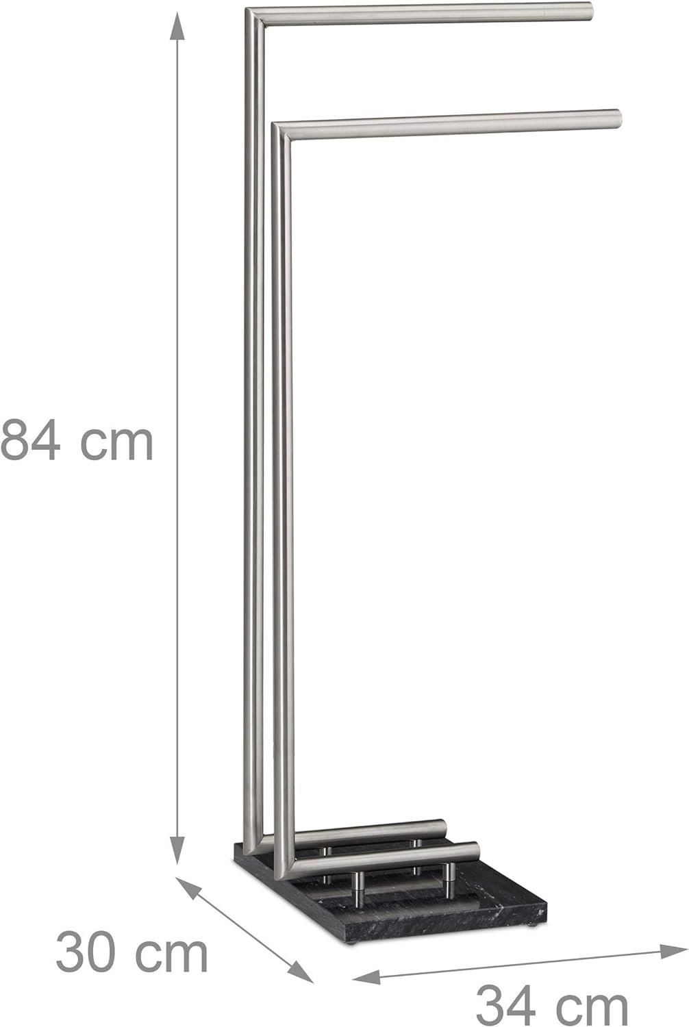 - Stabil: Der schwere Standfuss aus Marmor ist 30 x 20 cm gross - Sorgt für einen sicheren und festen Stand - Die Handtuchstangen sind aus gebürstetem Stahl - Edler und moderner Look