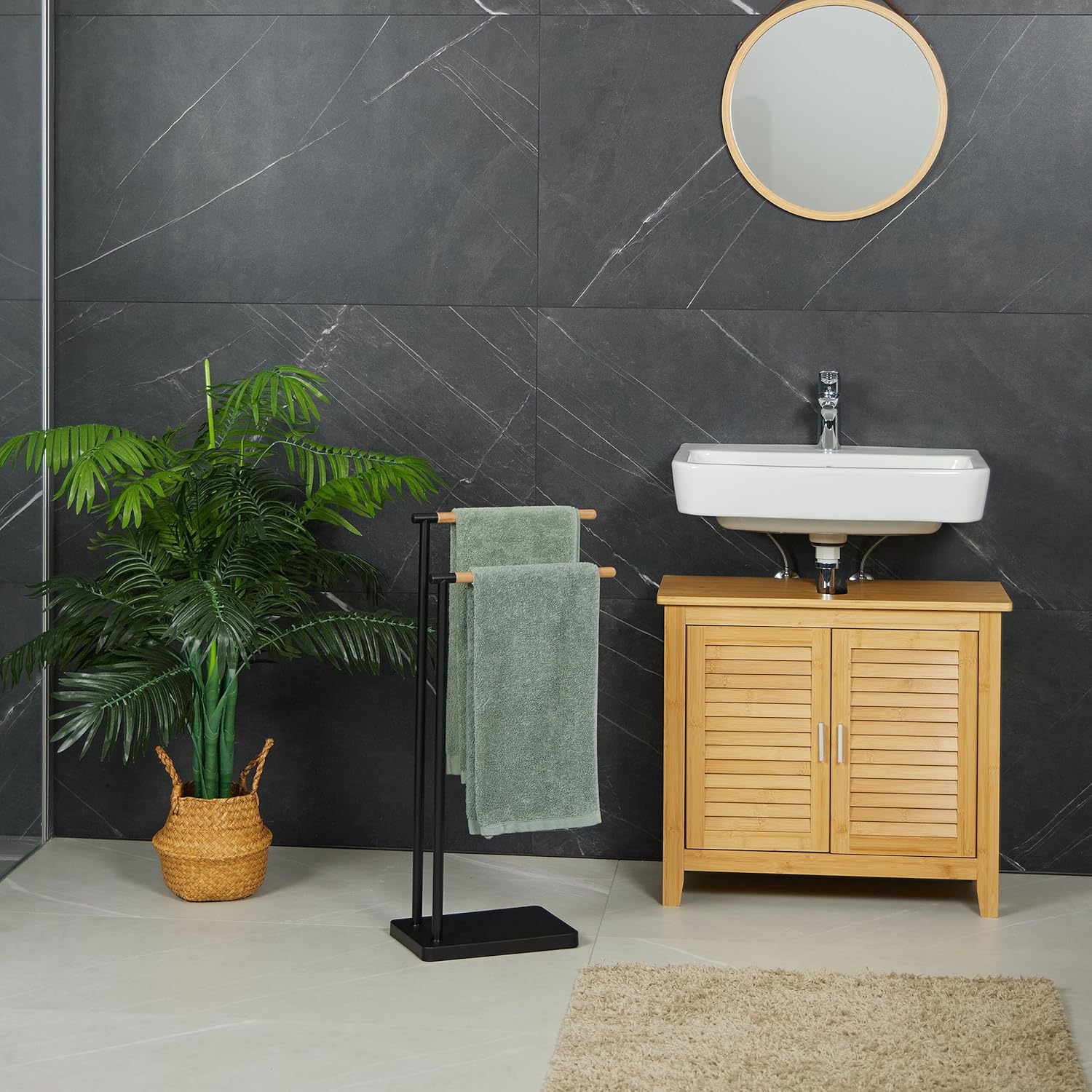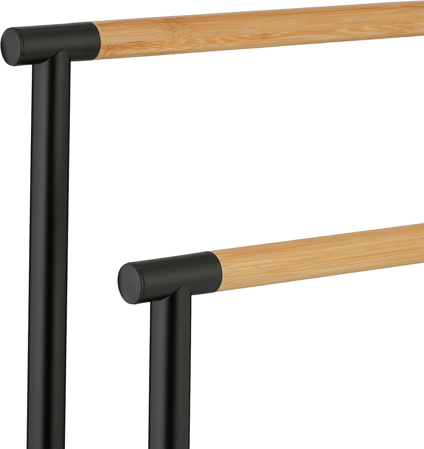 - Design: Badetuchständer aus Edelstahl und Bambus - Mit 2 versetzten Ständern für bessere Trocknung