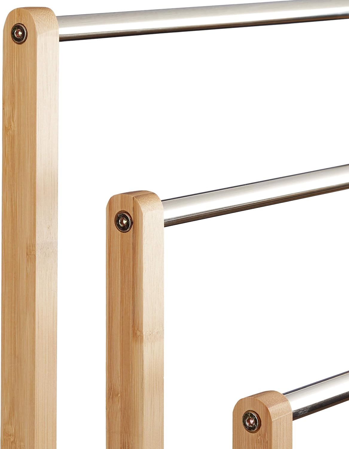 - Modernes Design: Der Handtuchständer aus Bambus und mit silbernen Metallstangen wirkt schick - Die Kombi passt perfekt zu einer eleganten Badeinrichtung