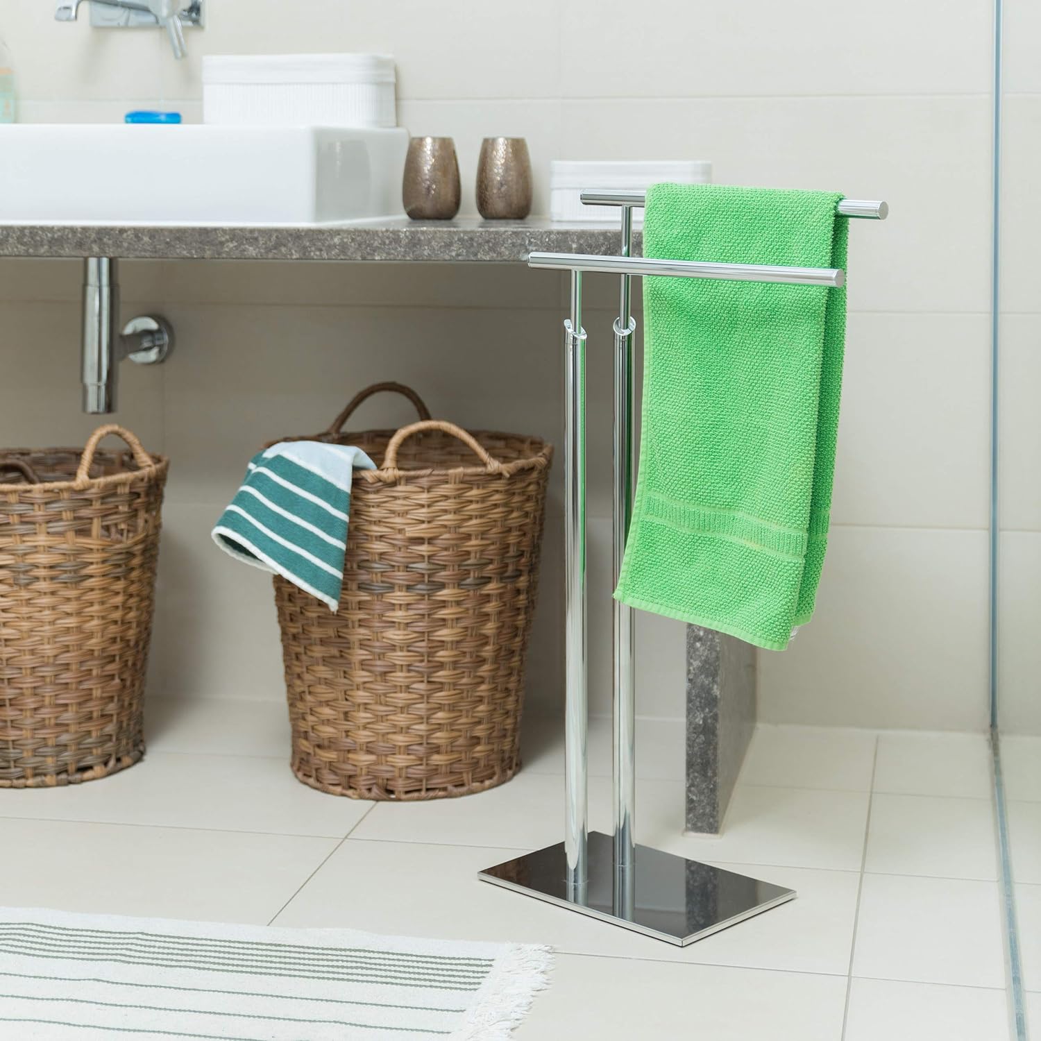 - Schlichtes Design: Vollständig aus verchromtem Metall in Edelstahl-Optik gefertigt - Fügt sich dezent in Ihr Badezimmer und verleiht dem Handtuchständer einen modernen, unaufdringlichen Look