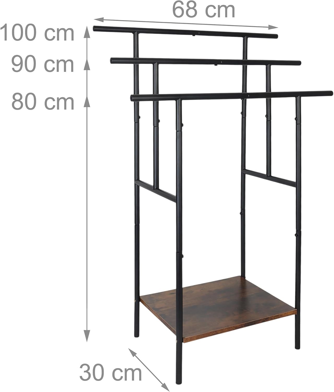 - Details: Duschtuchhalter mit schwarzem Metallgestell und brauner Ablage - HBT: ca. 100 x 68 x 30 cm