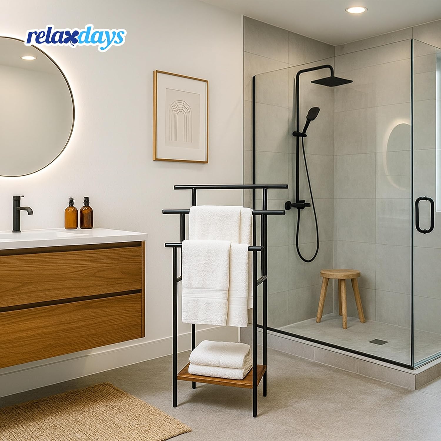 - Vielseitig: Der freistehende Duschhandtuchhalter ist flexibel positionierbar in Bad und Gäste-WC