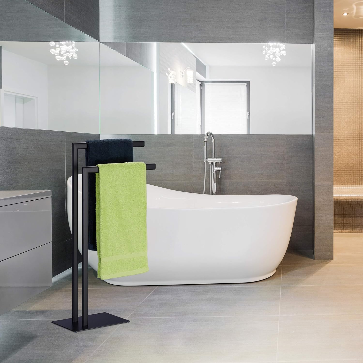 - Smart: Die versetzt angeordneten Stangen des Duschtuchhalters sorgen für eine gute Luftzirkulation