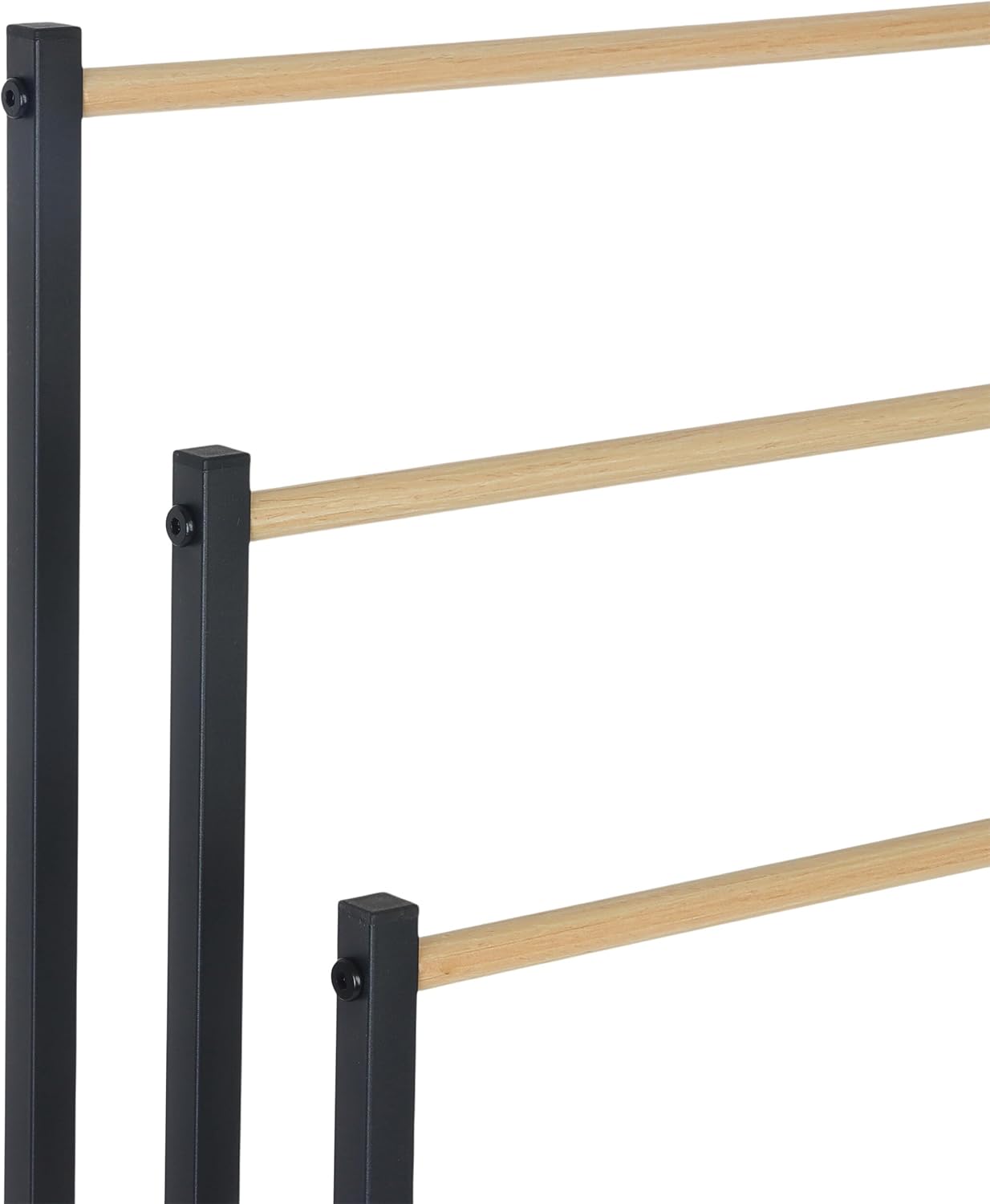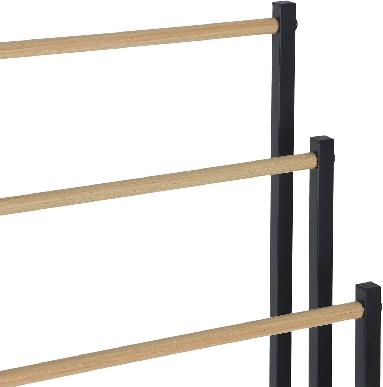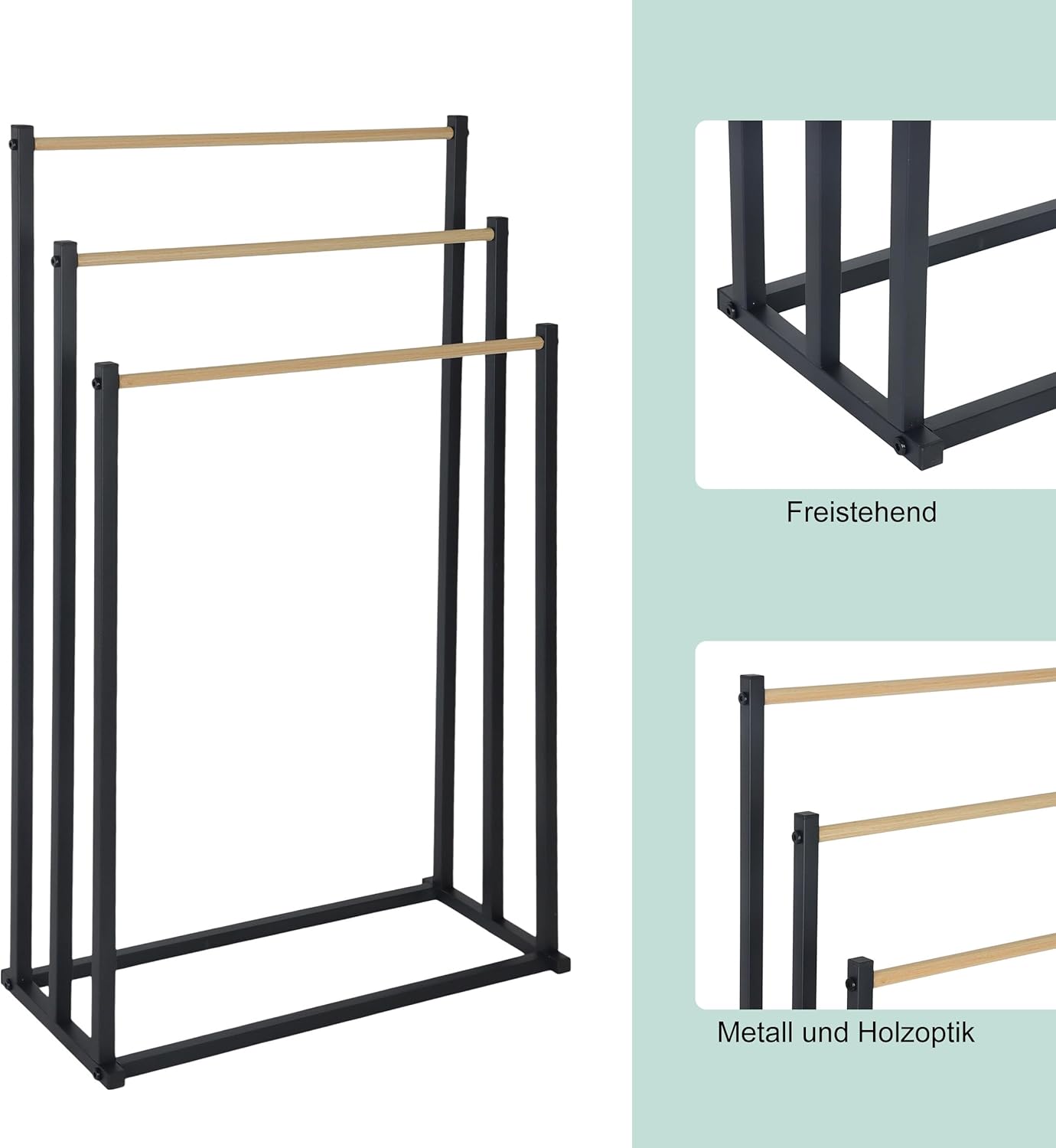 - Optik: Handtuchständer mit schwarzem Metallgestell und Stangen in Holzoptik - Industrial-Design