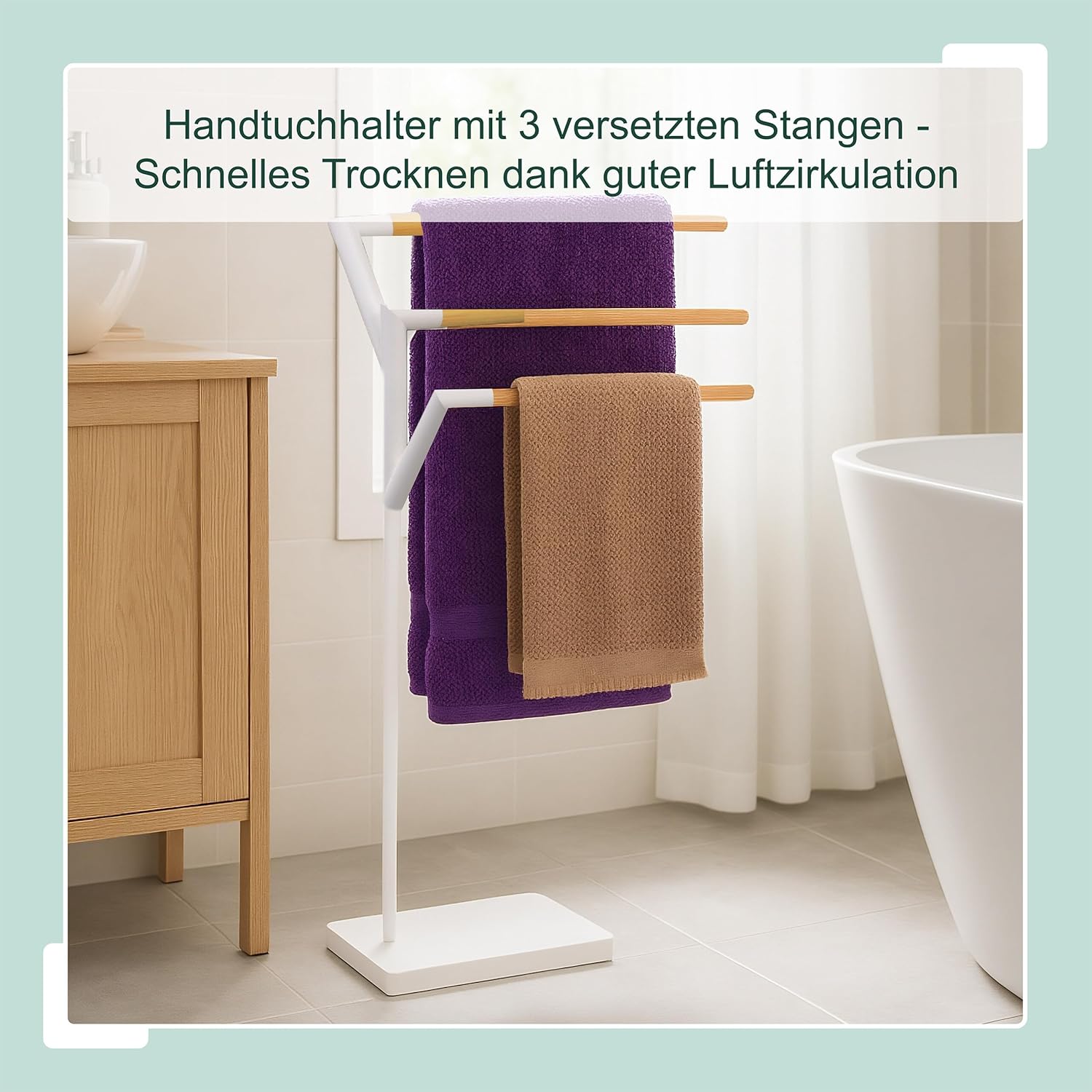 - Praktisch: Handtuchhalter mit 3 versetzten Stangen - Schnelles Trocknen dank guter Luftzirkulation