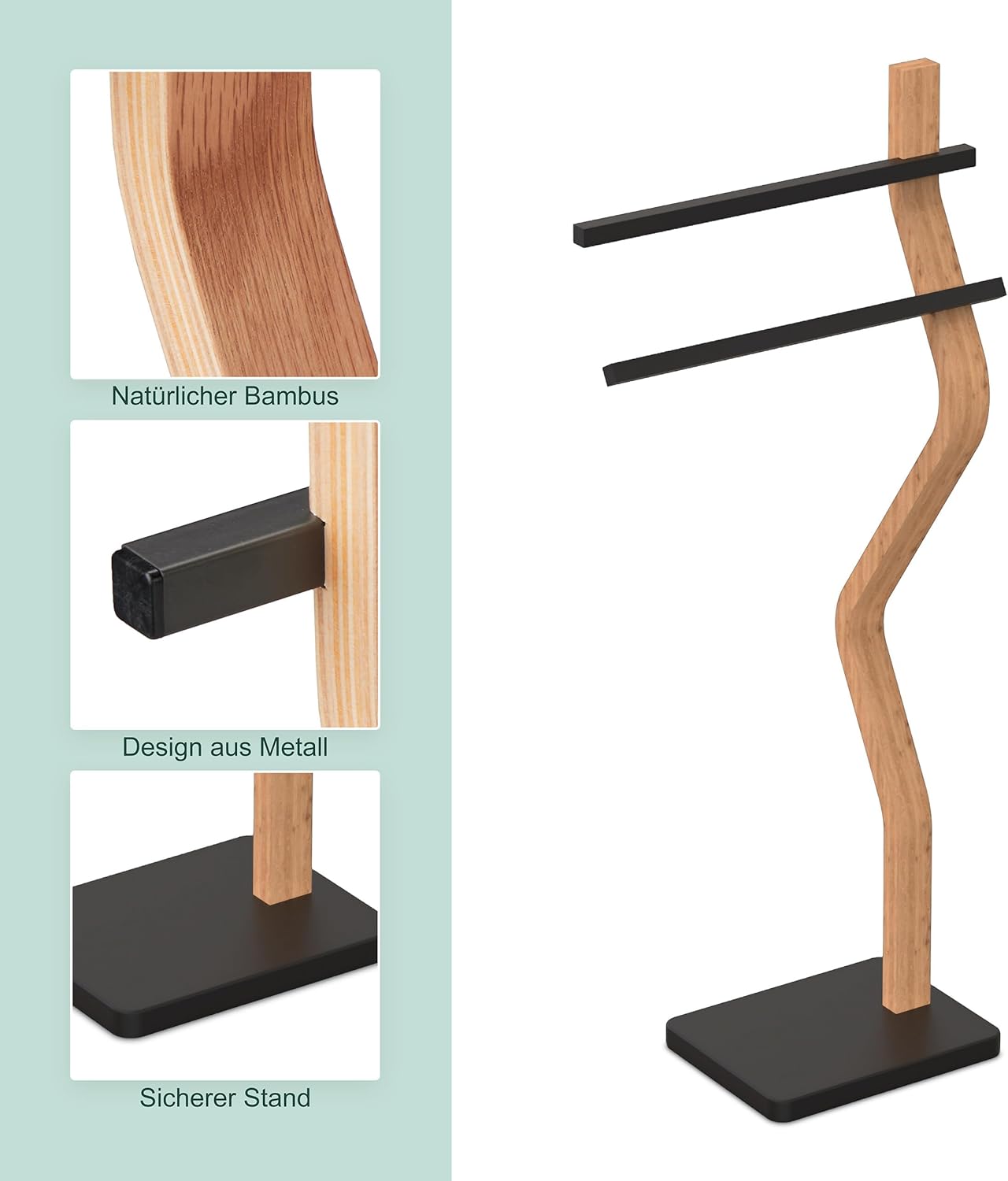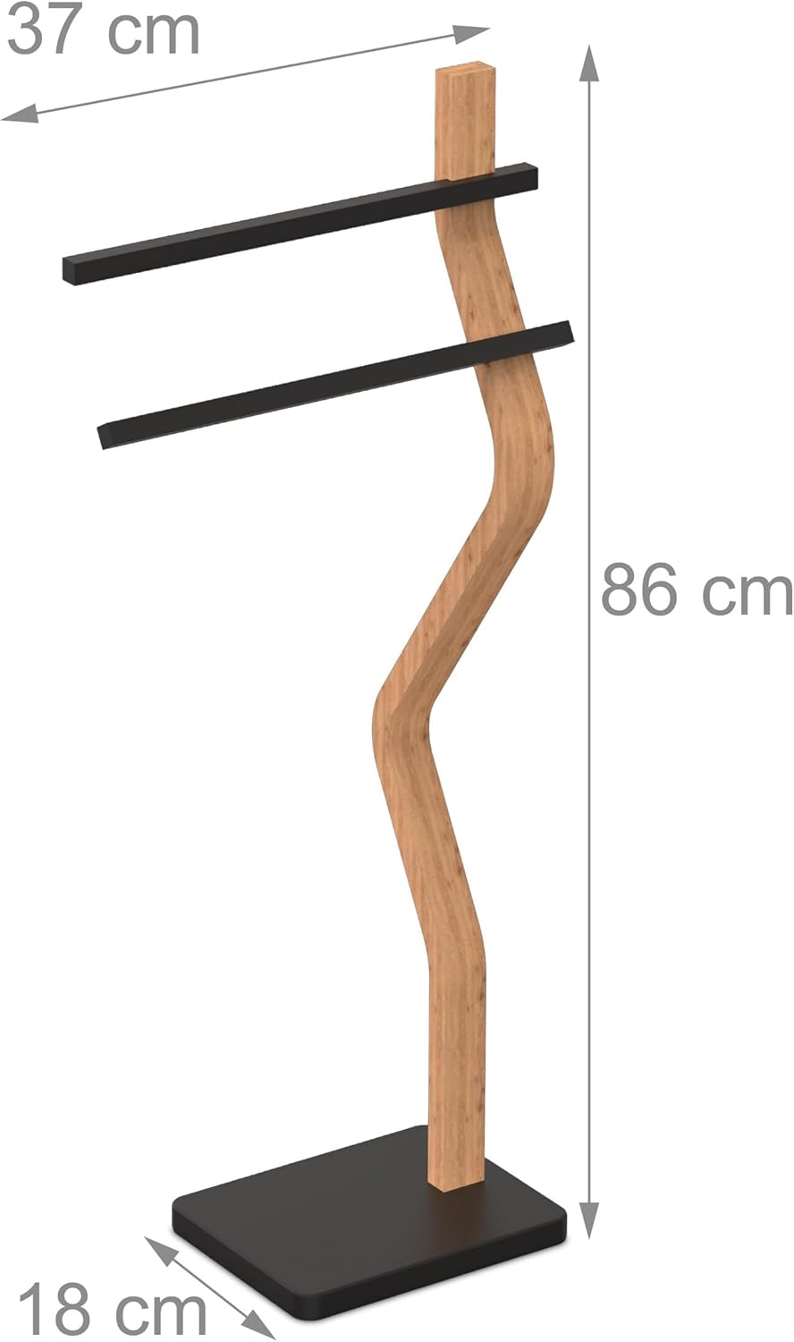 - Design: Dekorativer Standhandtuchhalter mit geknicktem Holzgestell - Stangen und Standfuss in Schwarz