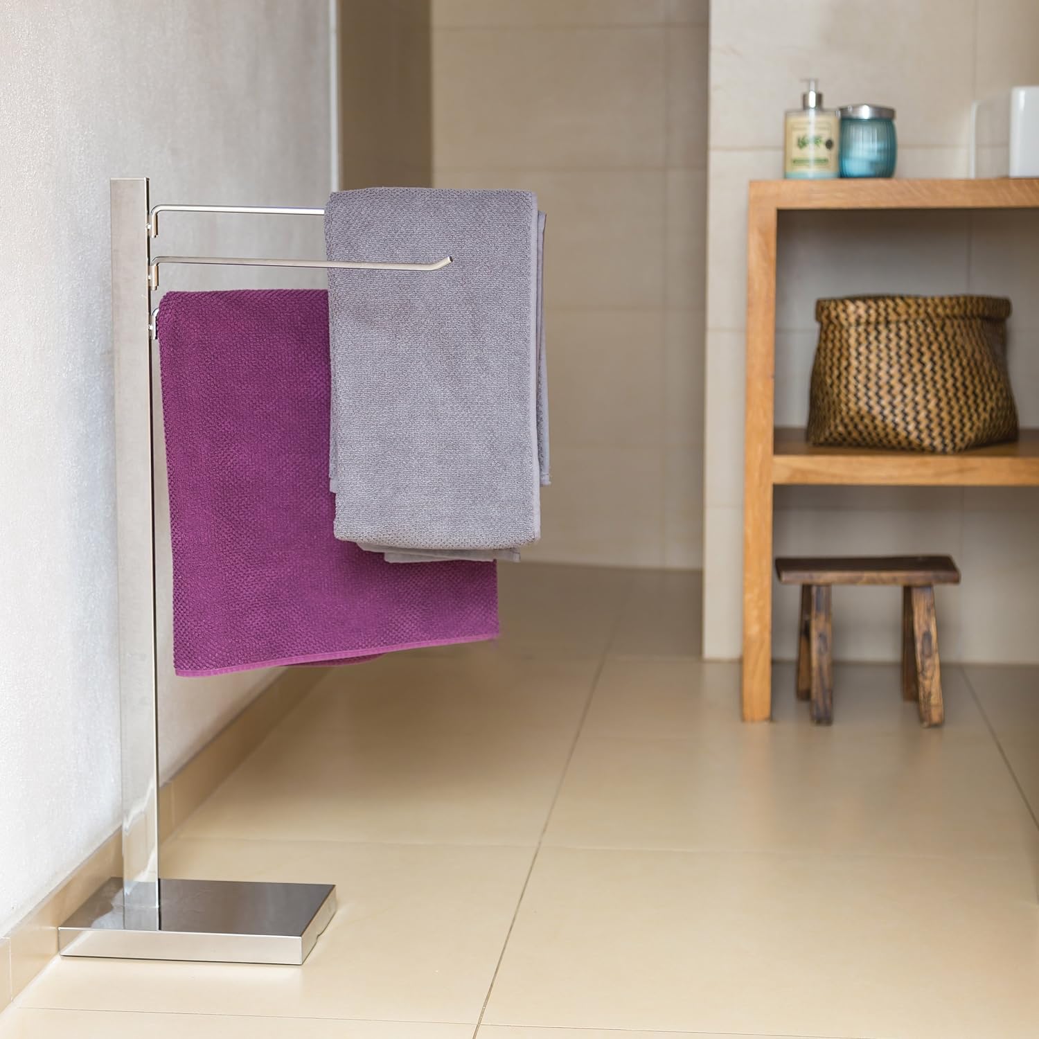 - Sicherer Halt auf stabilem Standfuss - Kunststoffboden verhindert Kratzer auf dem Untergrund - Der Handtuchständer findet auch ganz ohne Bohren in Ihrer Mietwohnung seinen Platz