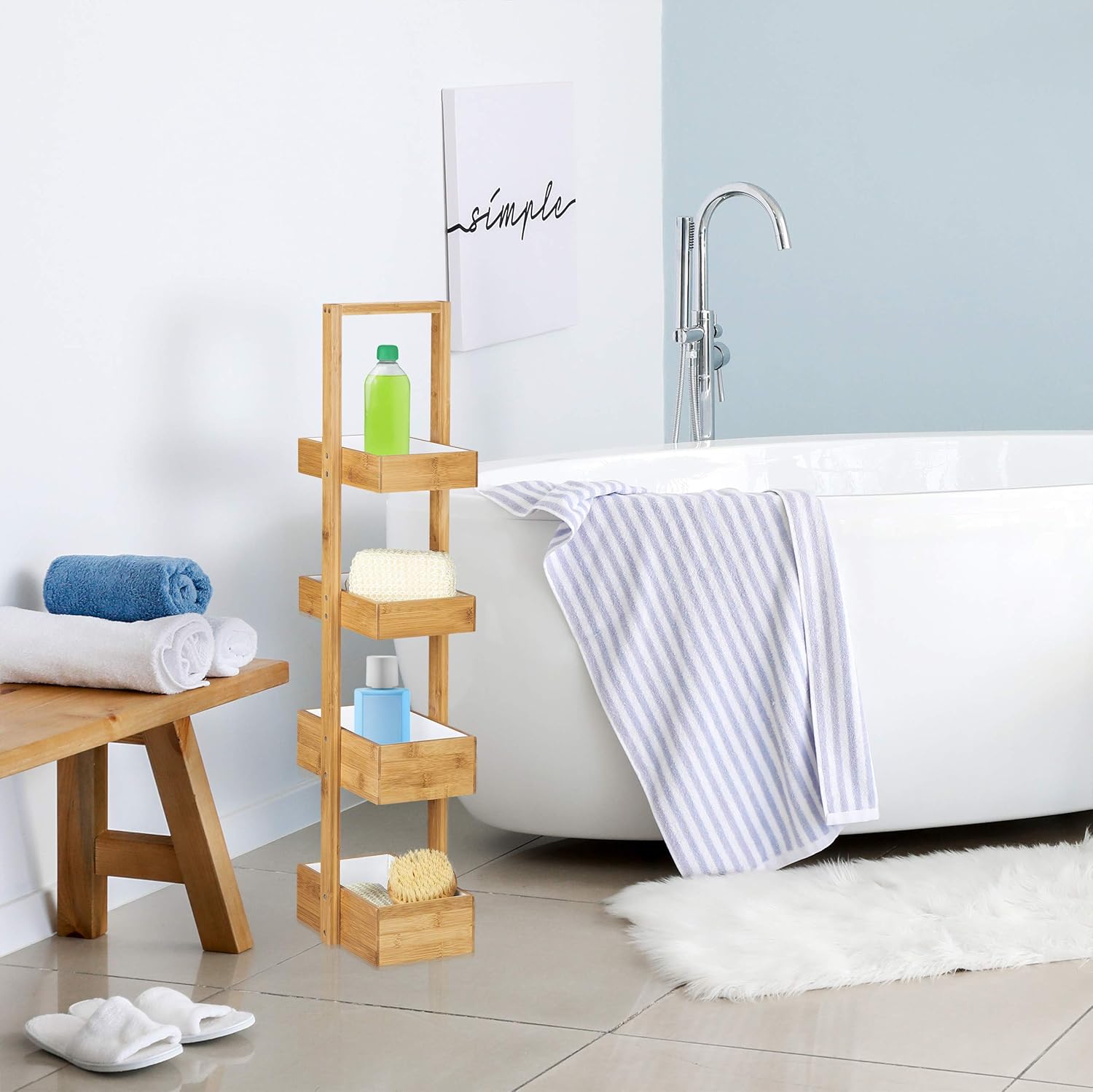 - Mehr Ordnung: Schmales Bambus Badregal für mehr Ordnung im Badezimmer - Stauraum für Kosmetik, Shampoos und mehr - Standregal mit H x B x T 88,5 x 25,5 x 18,5 cm