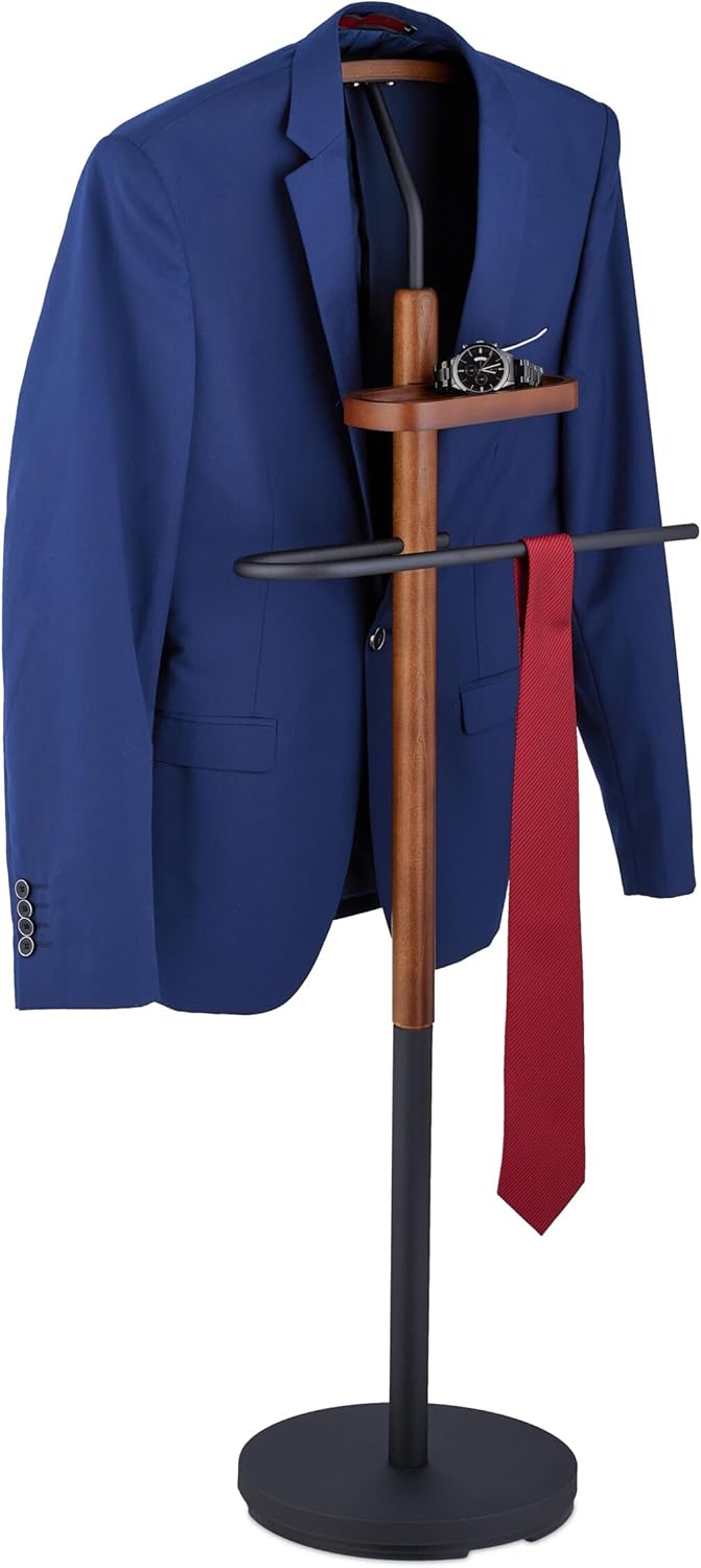 - Design: Eleganter Kleiderbutler in Schwarz und Holzoptik - Beschwerter Fuss sorgt für sicheren Stand