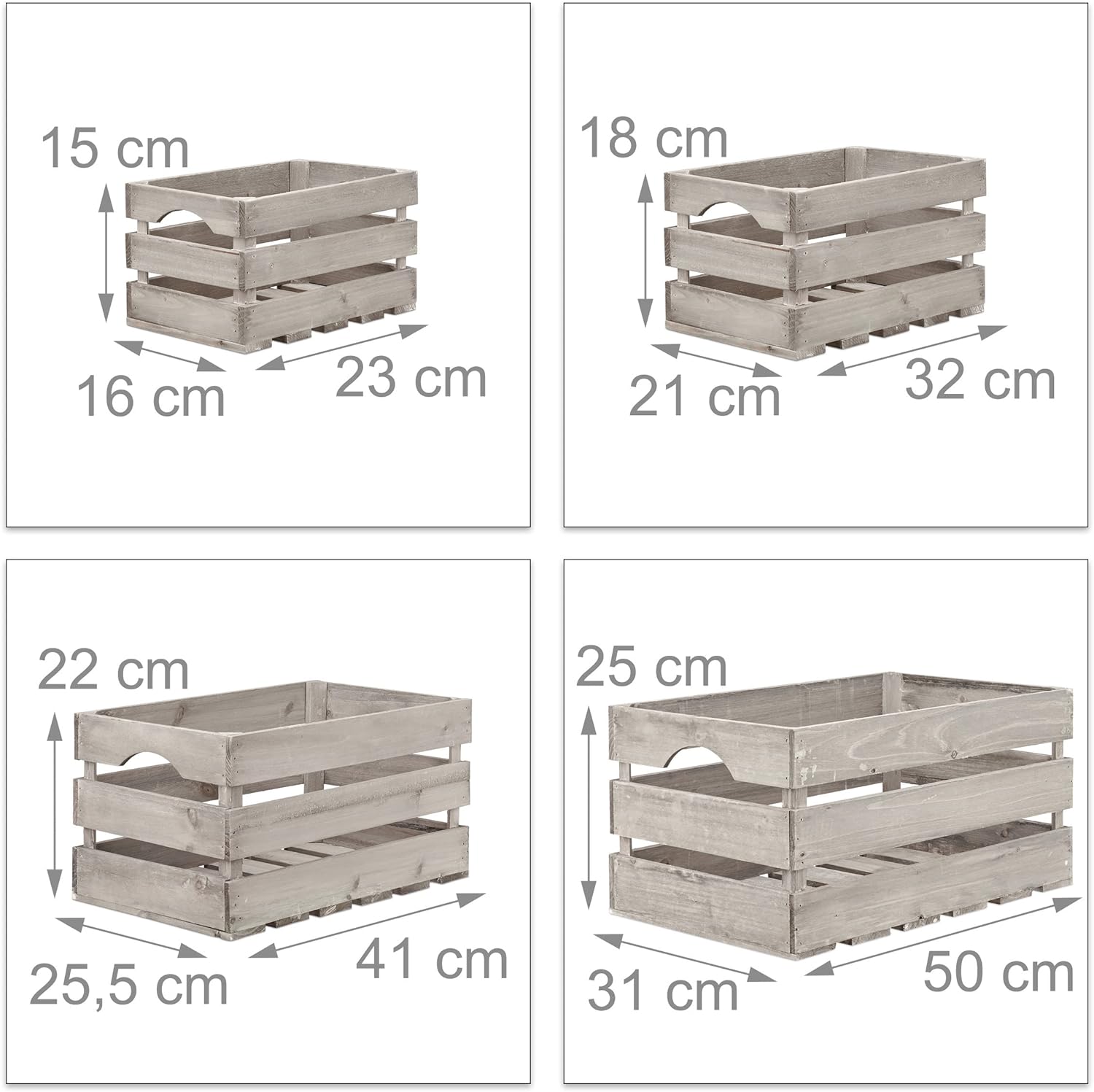 - Set: 4er Set Aufbewahrungskisten in 4 unterschiedlichen Grössen – Aus Tannenholz mit Griffloch - Grau