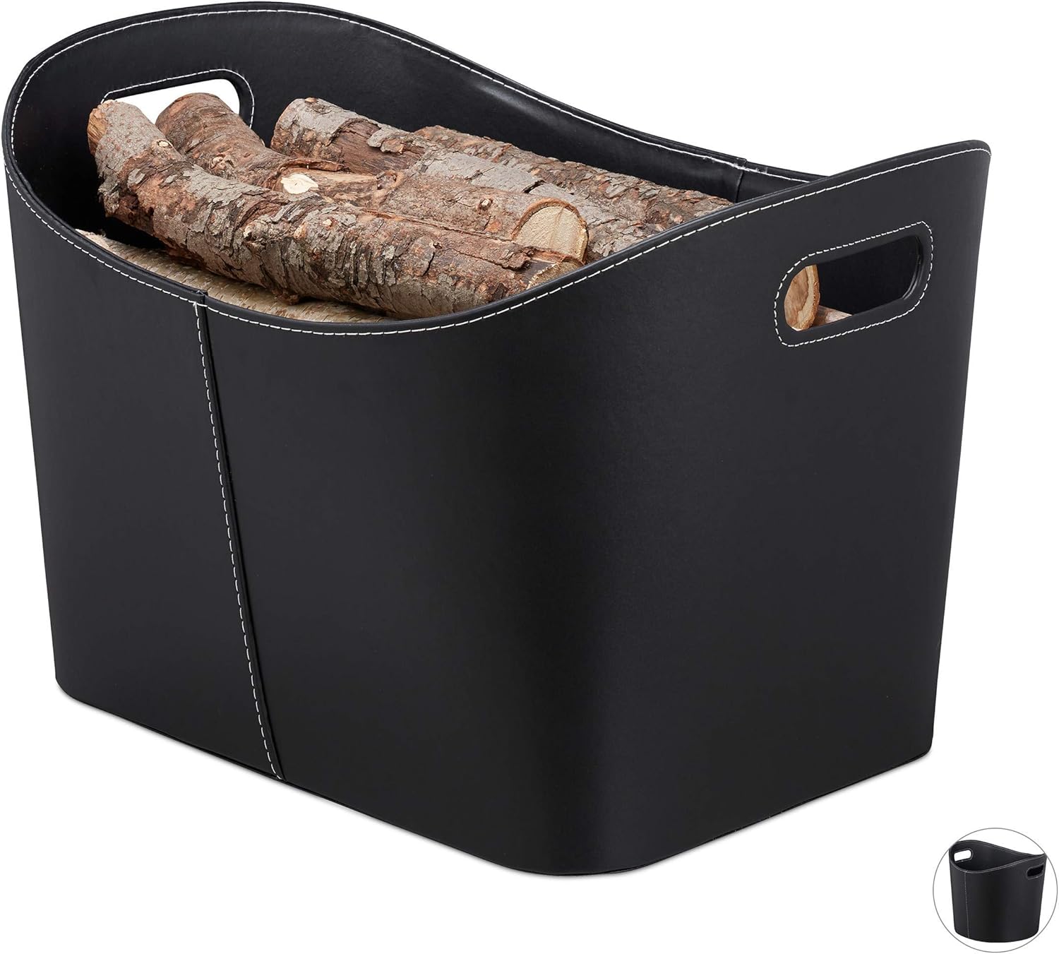 - Produkt 2: Basics: Stabiler Kaminholzkorb mit Kunstlederbezug - HBT: ca. 35,5 x 55 x 42,5 cm - Mit 2 Tragegriffen