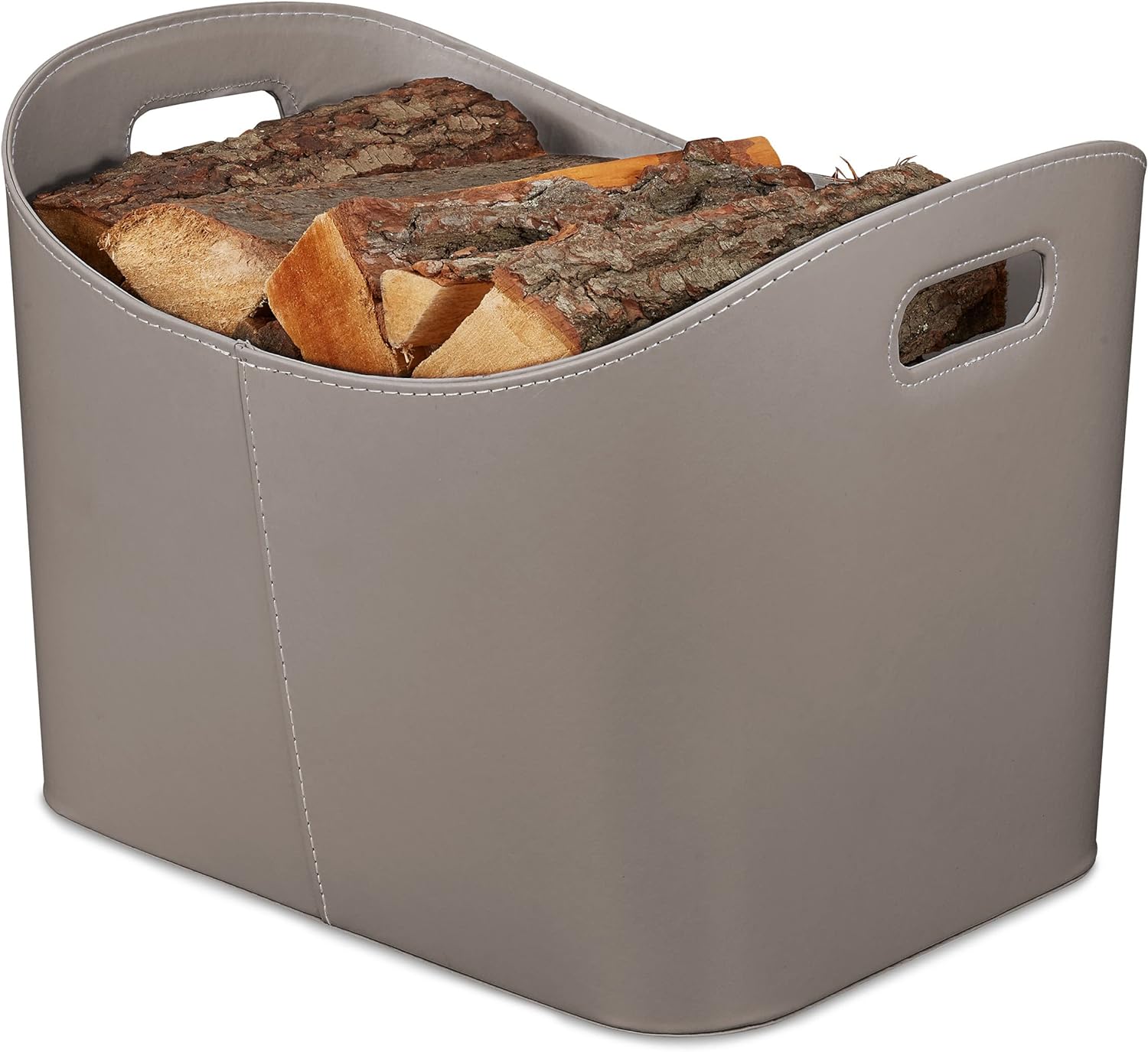 - Basics: Stabiler Kaminholzkorb im Materialmix mit Kunstlederbezug - HBT: ca. 36x53,5x41 cm - Ca. 58L