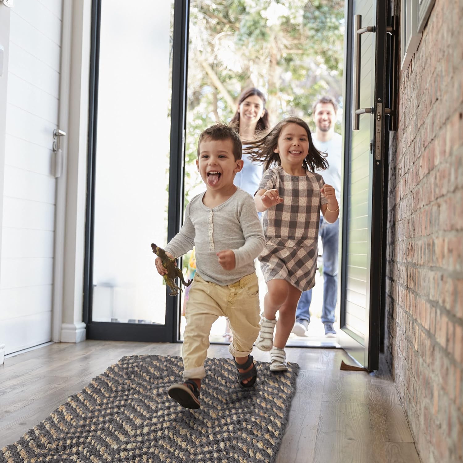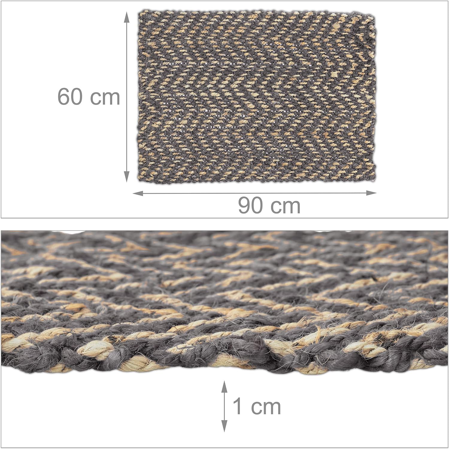 - Dekorativ: Juteteppich mit Zickzack-Muster in Grau und Beige - Perfekt für rustikale Einrichtungen