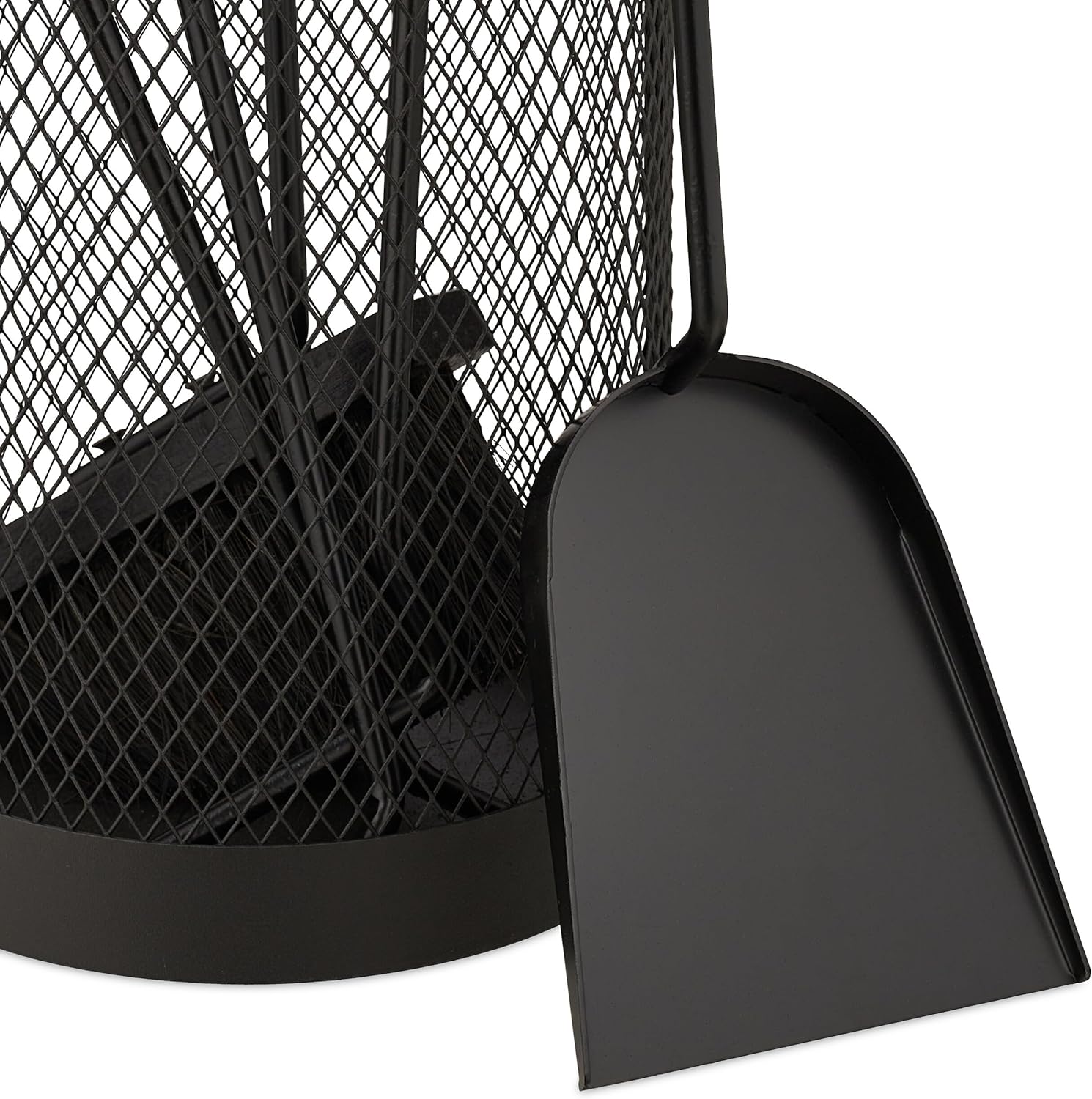 - Details: Kaminwerkzeuge aus schwarzem Metall - HxD: ca. 56x17 cm - Kaminbesteckhalter im Mesh-Design