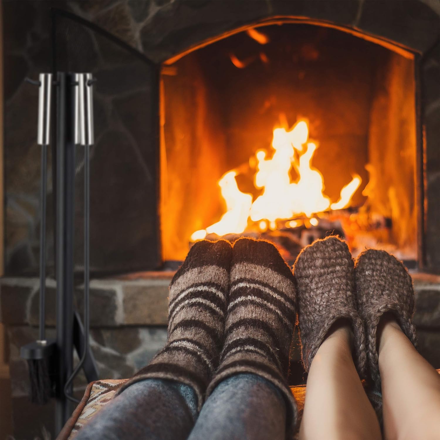 - Für flackerndes Kaminfeuer: Haken zum Anfachen des Feuers für lange Brenndauer - Besen und Schaufel zum Reinigen des Kamins