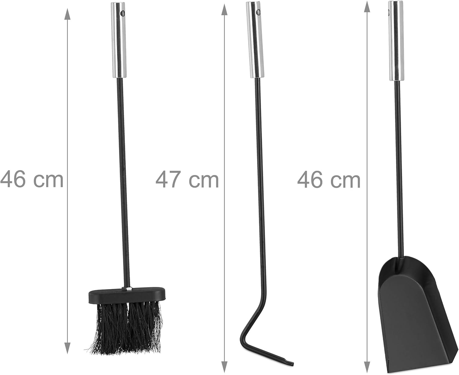 - Details: Länge des Schürhakens: ca. 47 cm - Länge der Schaufel: ca. 46 cm - Länge des Besens: ca. 46 cm - Borstenlänge: ca. 7 cm