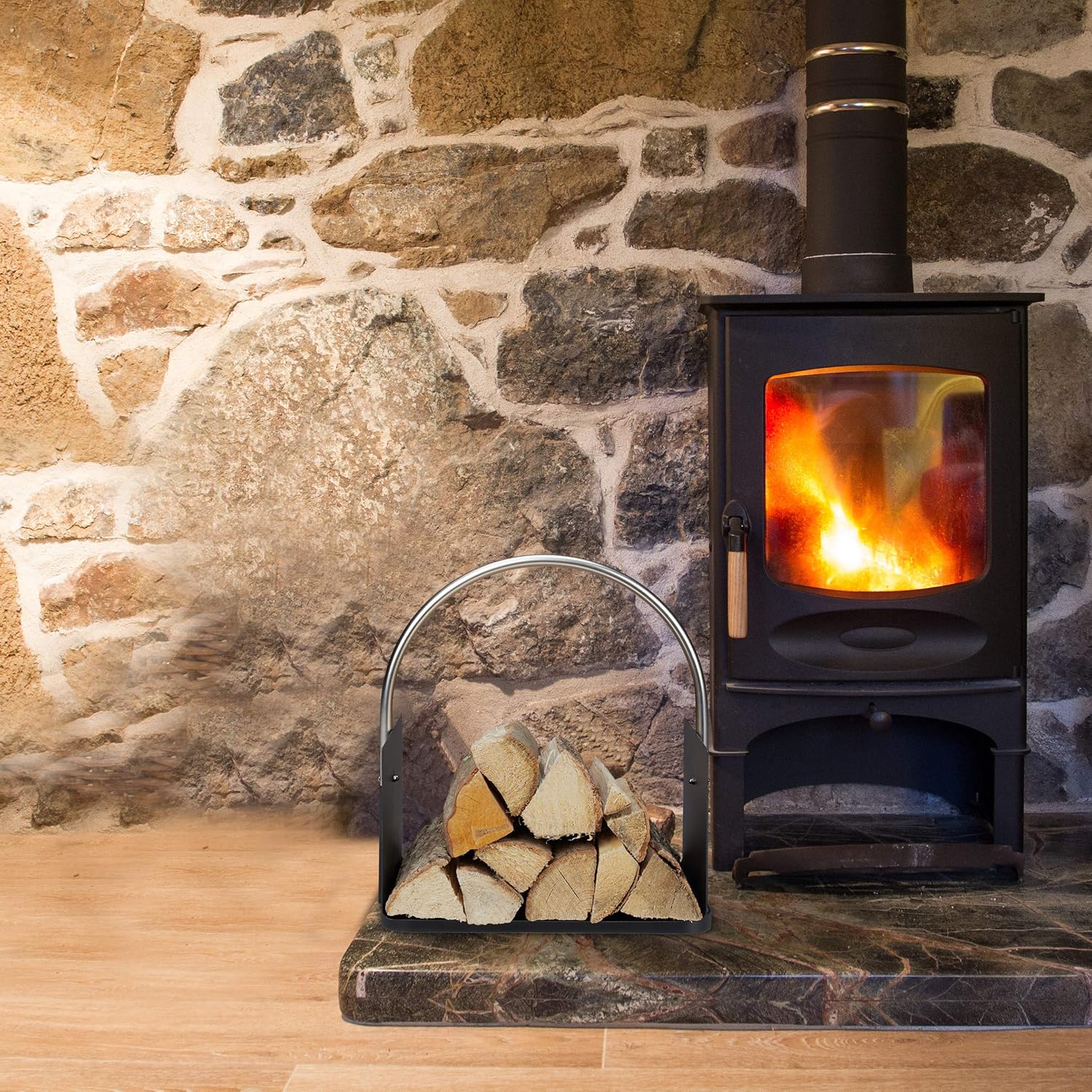 - Praktisch: Kaminholzkorb mit rundem, vernickeltem Henkel zum Tragen - Für einen einfachen Transport