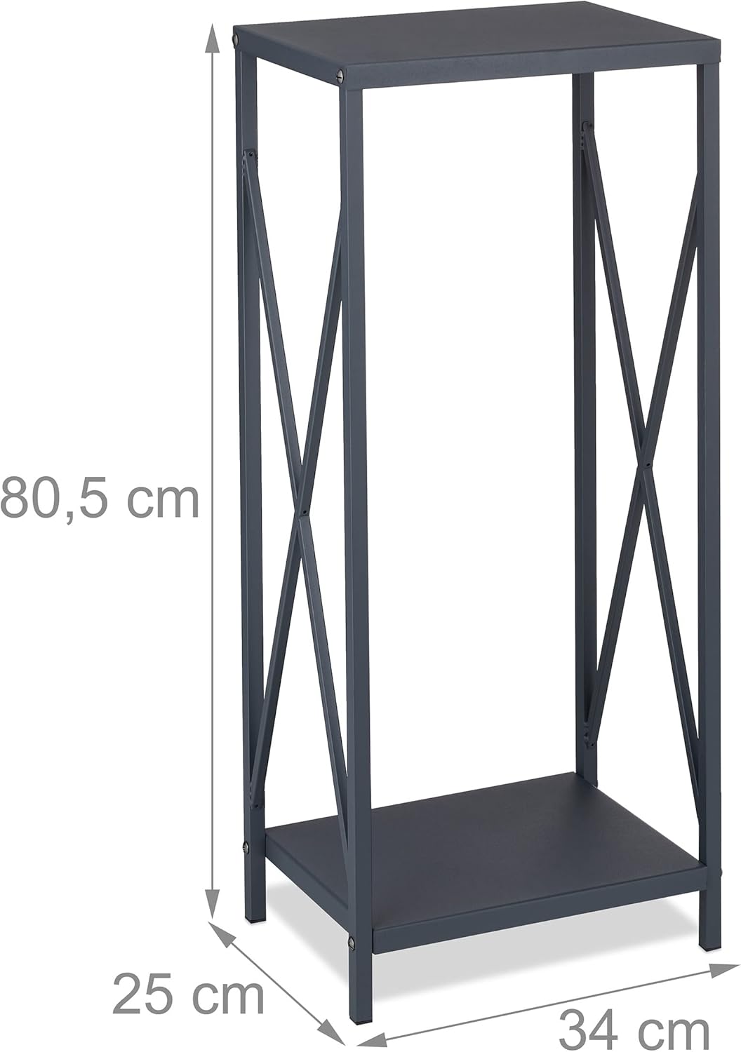 - Optik: Graues Holzregal aus Stahl mit Pulverbeschichtung - Elegantes Design mit gekreuzten Streben