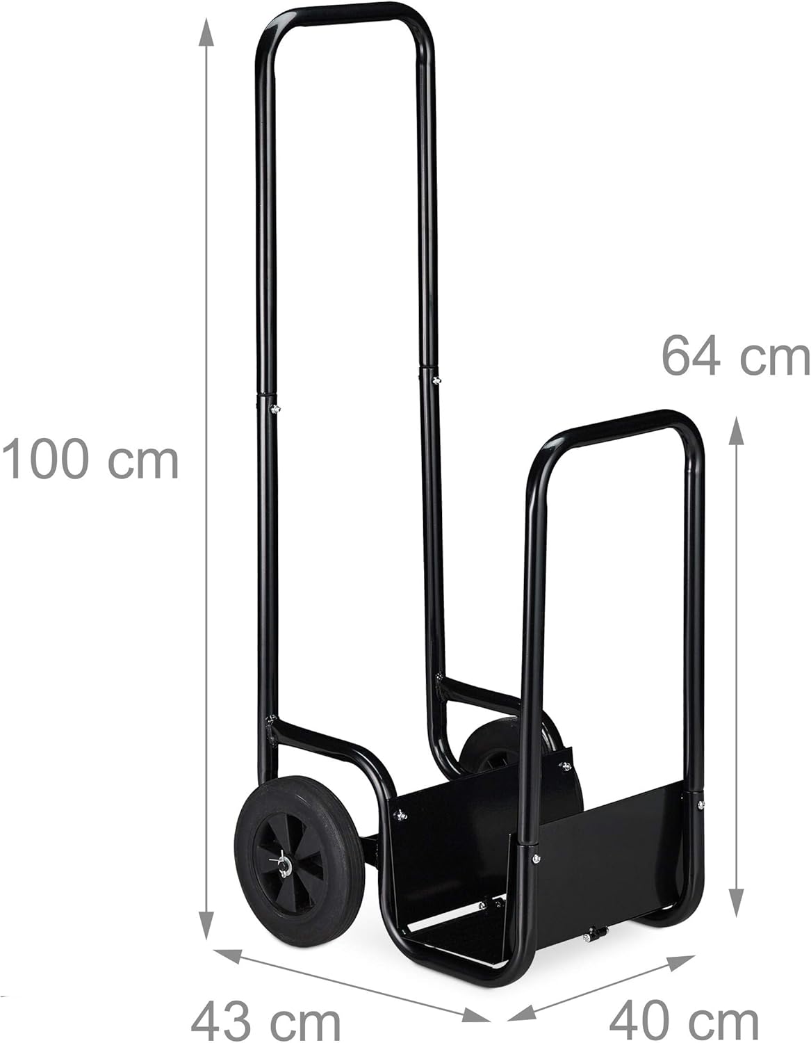 Relaxdays Kaminholzwagen, Brennholzkarre aus Stahl, mit 2 Rädern, Feuerholztransport & -aufbewahrung