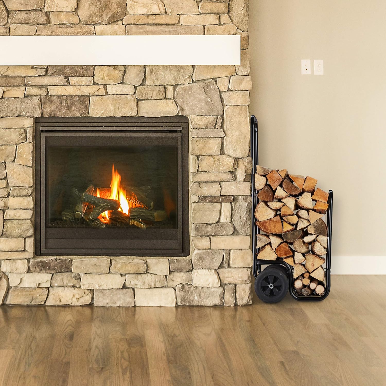 • Robust: Das schwarze Stahlgestell des Brennholz Transportwagens ist stabil - Für innen und aussen