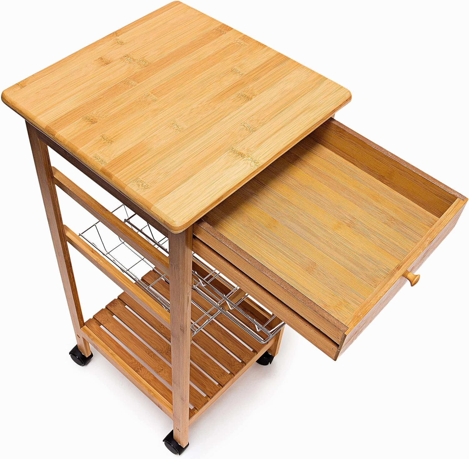 - Küchenwagen aus Bambus mit 2 Ablagen - Die feine Maserung des robusten und widerstandsfähigen Holzes fügt sich nahtlos in Ihr Wohnambiente ein und verleiht der Küche einen natürlichen Anstrich