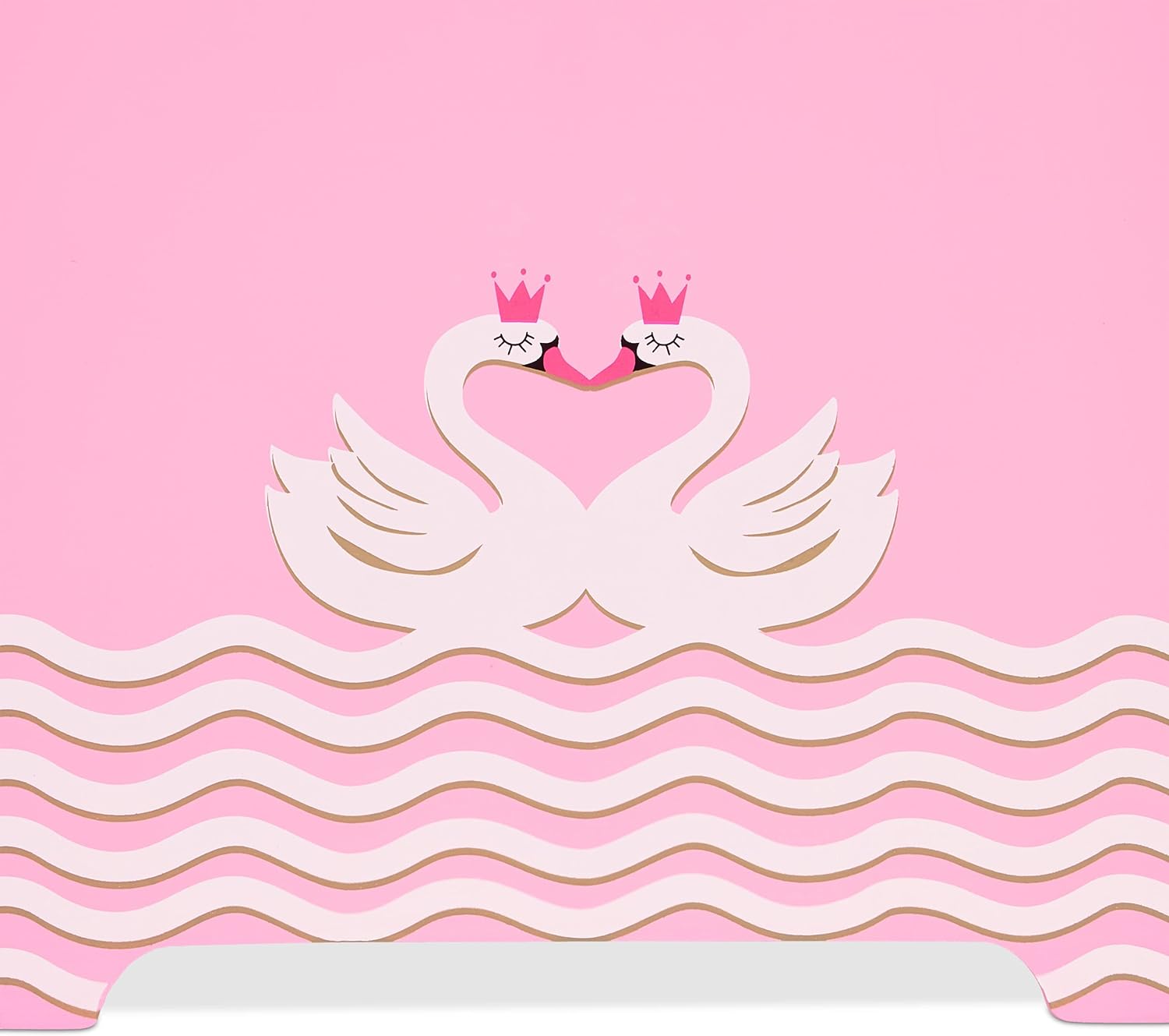 - Design: Kinderregal in Weiss und Rosa mit niedlichem Schwanen-Motiv - Blickfang für das Kinderzimmer