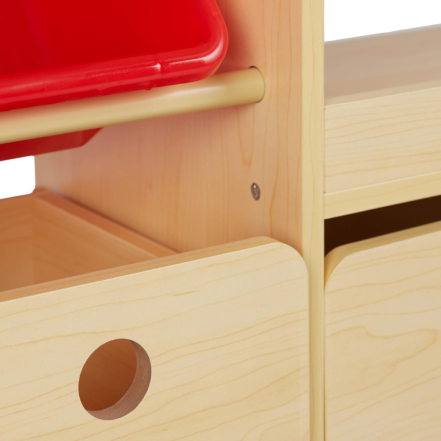- Stauraum: Das Spielzeugregal bietet viel Platz für Kuscheltiere, Bauklötze und dient als Bücherregal