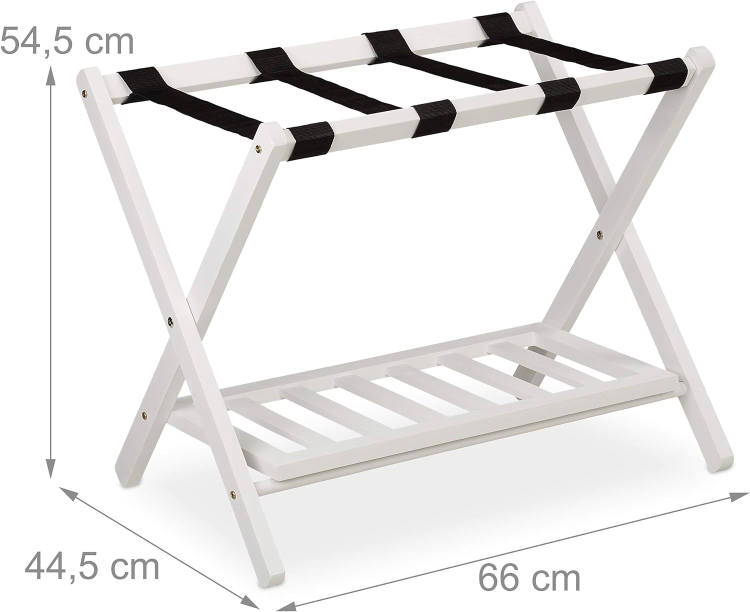 Relaxdays Kofferständer klappbar, Kofferhocker Holz, HBT: 54,5 x 66 x 44,5 cm, 2 Ablagen, Kofferaufb