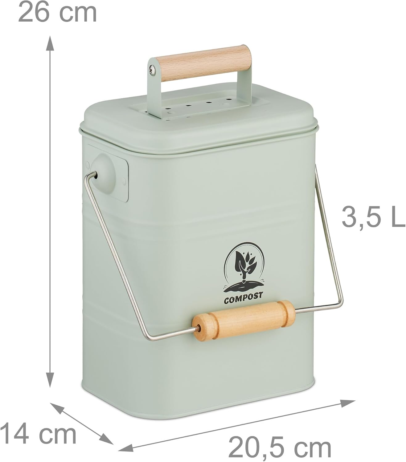 - Design: Eckiger Biomüllbehälter mit Aufschrift "Compost" - Henkel mit Griff erleichtert das Tragen