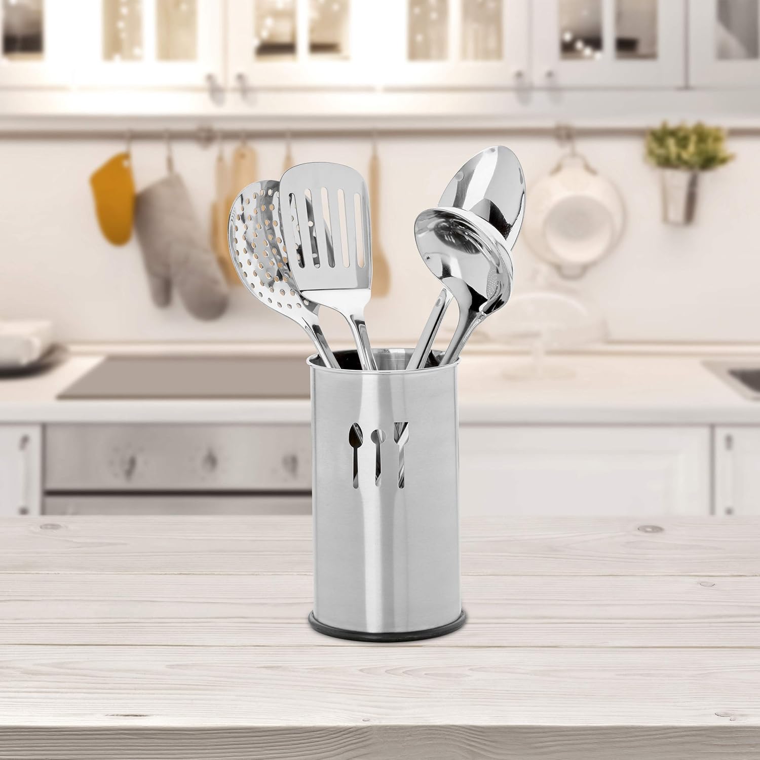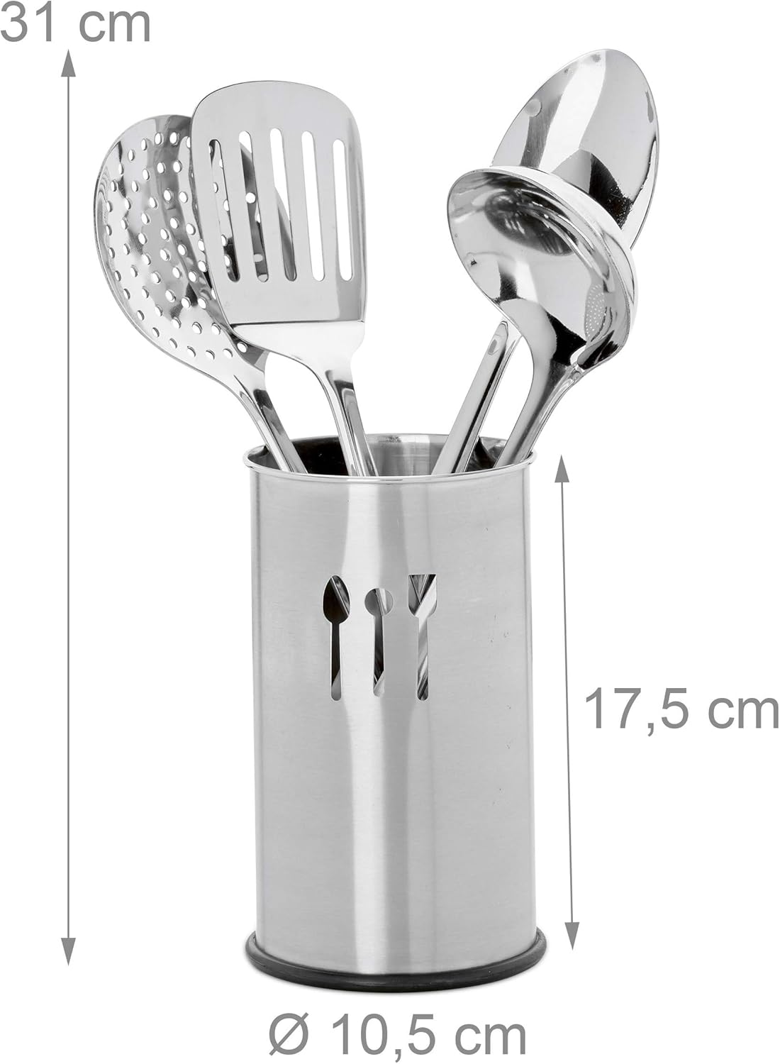 Relaxdays Küchenhelfer Set Edelstahl, 5 Teile, Besteckhalter, 4 Küchenutensilien, Kochzubehör, Kochg