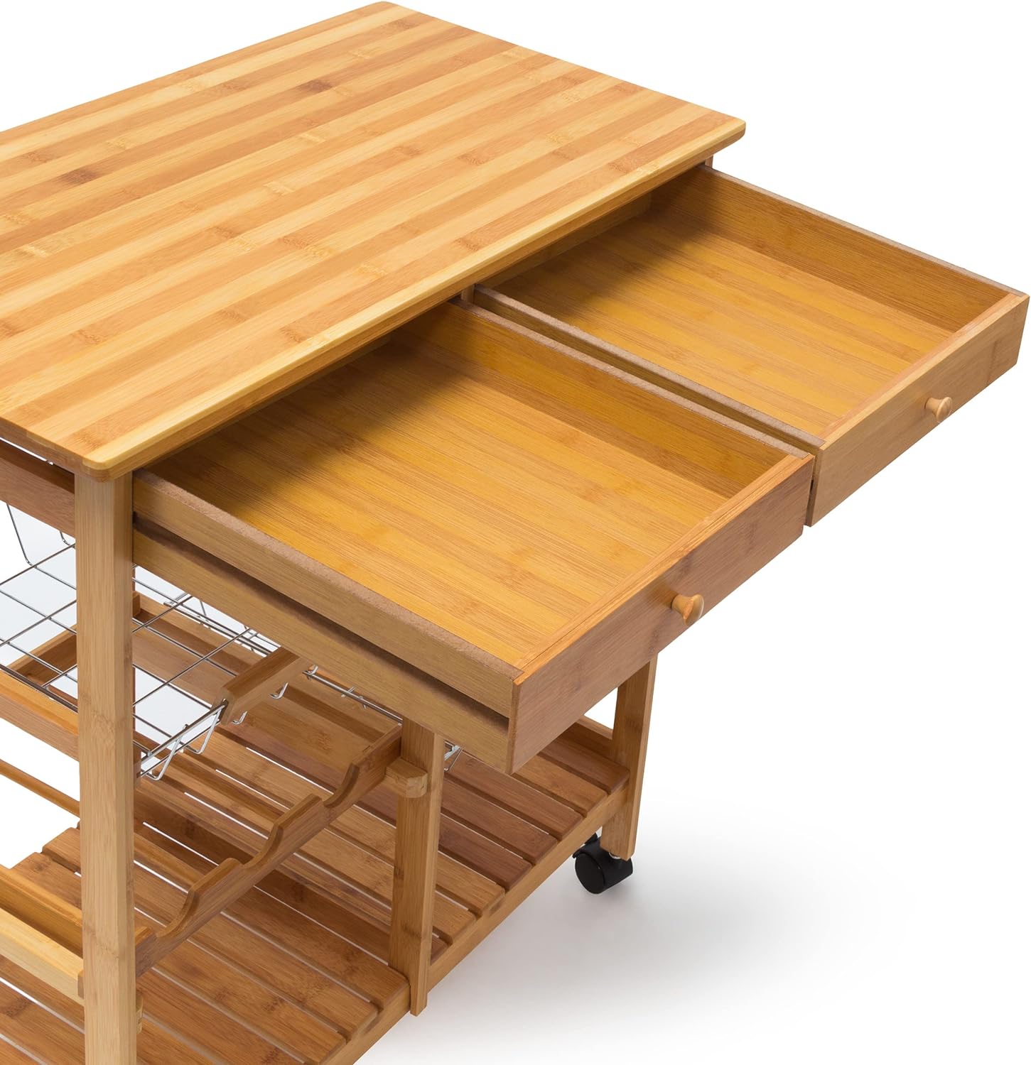 • Küchenwagen aus Bambus mit 2 oberen Ablagen - Die feine Maserung des robusten und widerstandsfähigen Holzes fügt sich nahtlos in Ihr Wohnambiente ein und verleiht der Küche einen natürlichen Anstrich