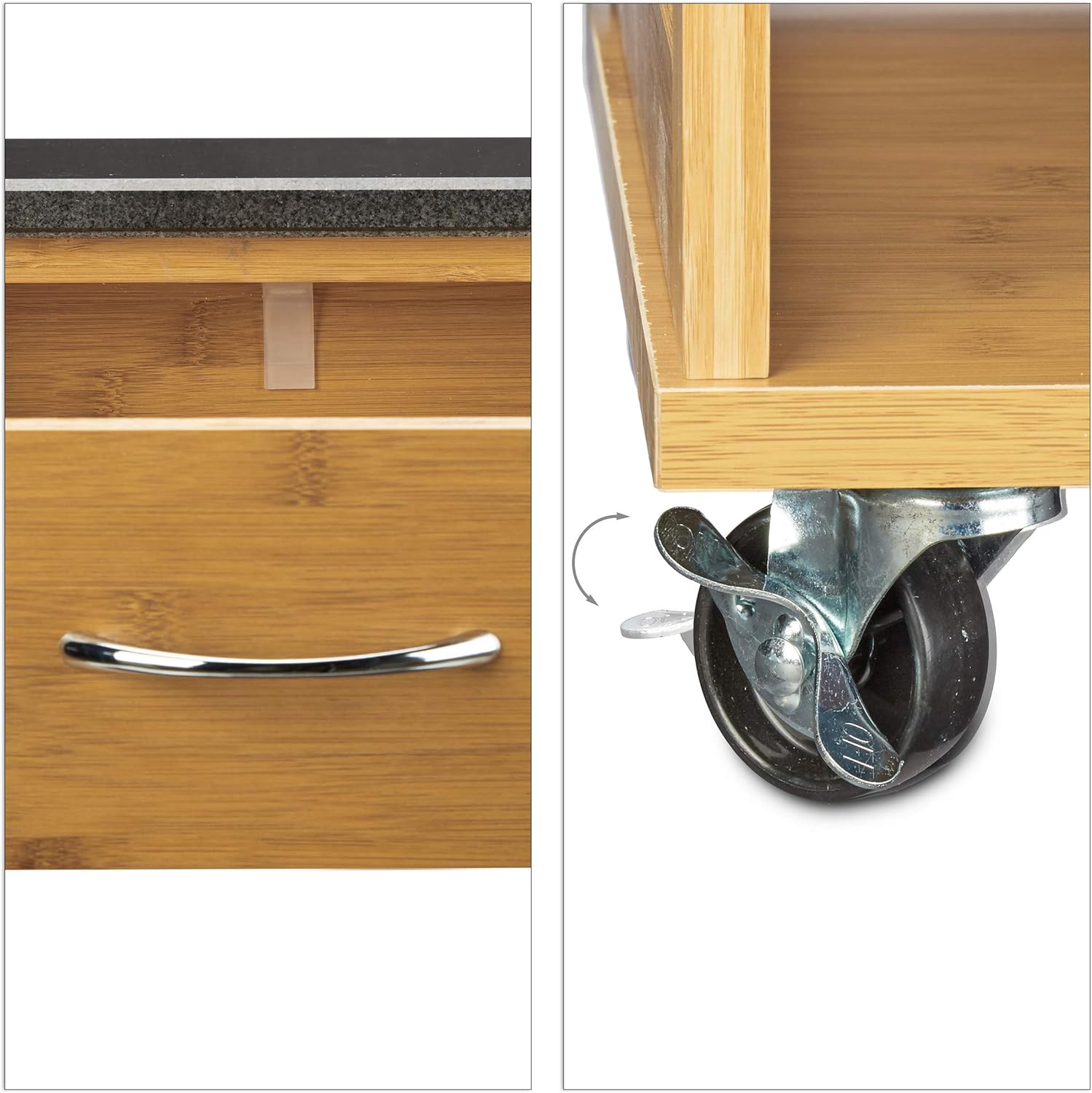 - Schicker Küchenwagen aus Bambus mit edler Arbeitsplatte aus schwarzem Marmor (47 x 37 cm) - Die feine Maserung in Verbindung mit dem hochwertigen Gestein fügt sich stilvoll in jede Einrichtung