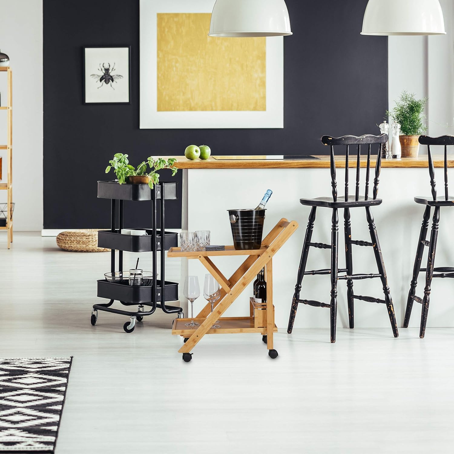 - Fahrbar: Servierwagen mit 4 komplett beweglichen Rollen - 2 Rollen des Servicewagens haben Bremsen - Die schwarzen Kunststoffrollen bewegen sich geräuscharm und schonen Fliesen sowie Bodenbeläge