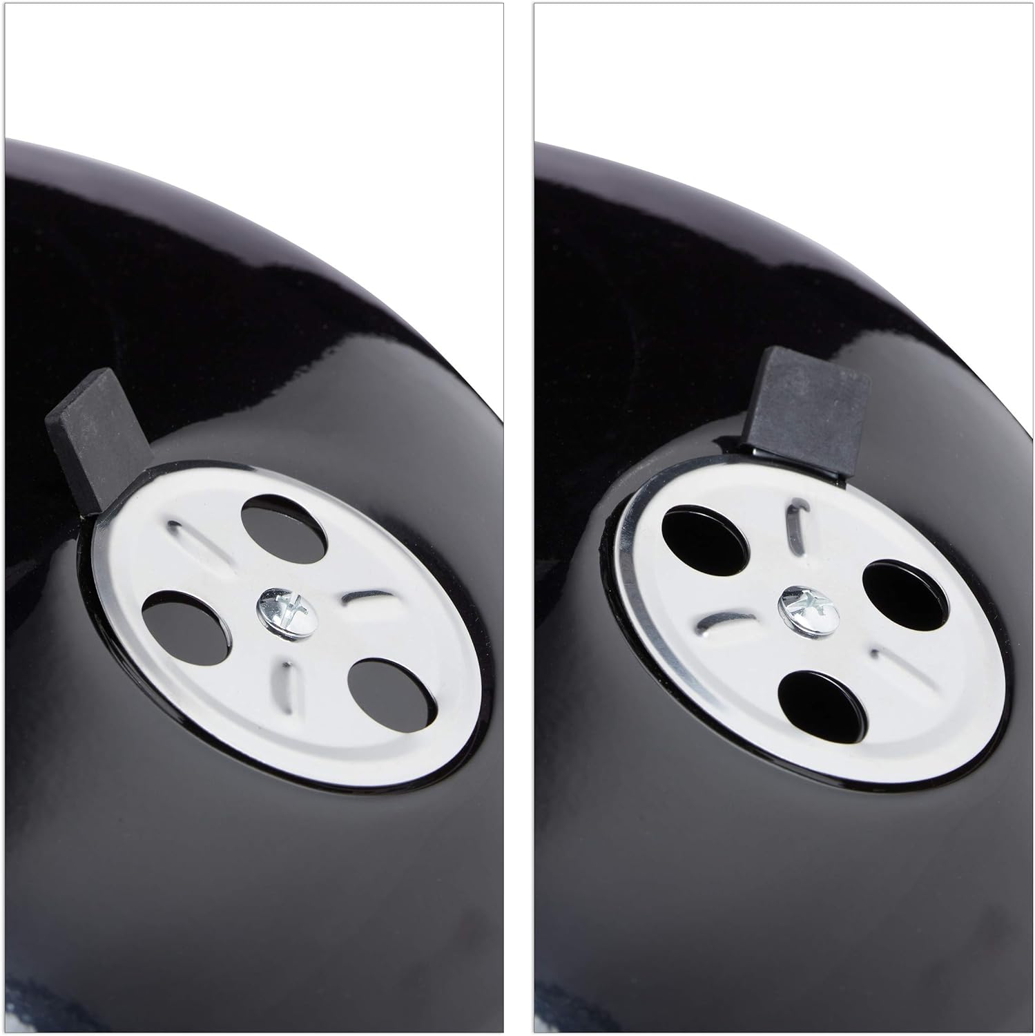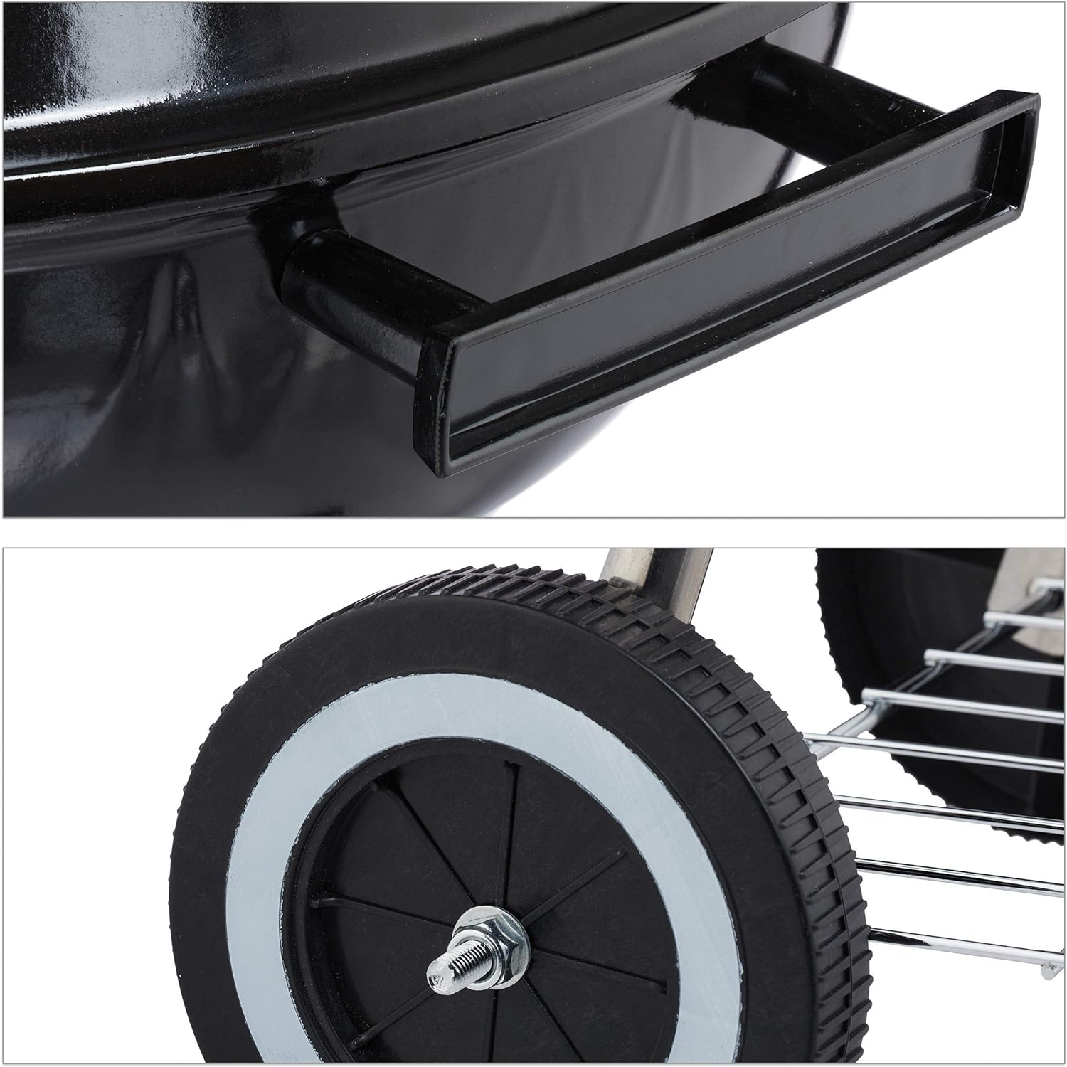 Relaxdays Kugelgrill mit Deckel, Ablage & Aschetopf, fahrbar, Garten & Camping, Grill ∅ 40 cm, Holzk