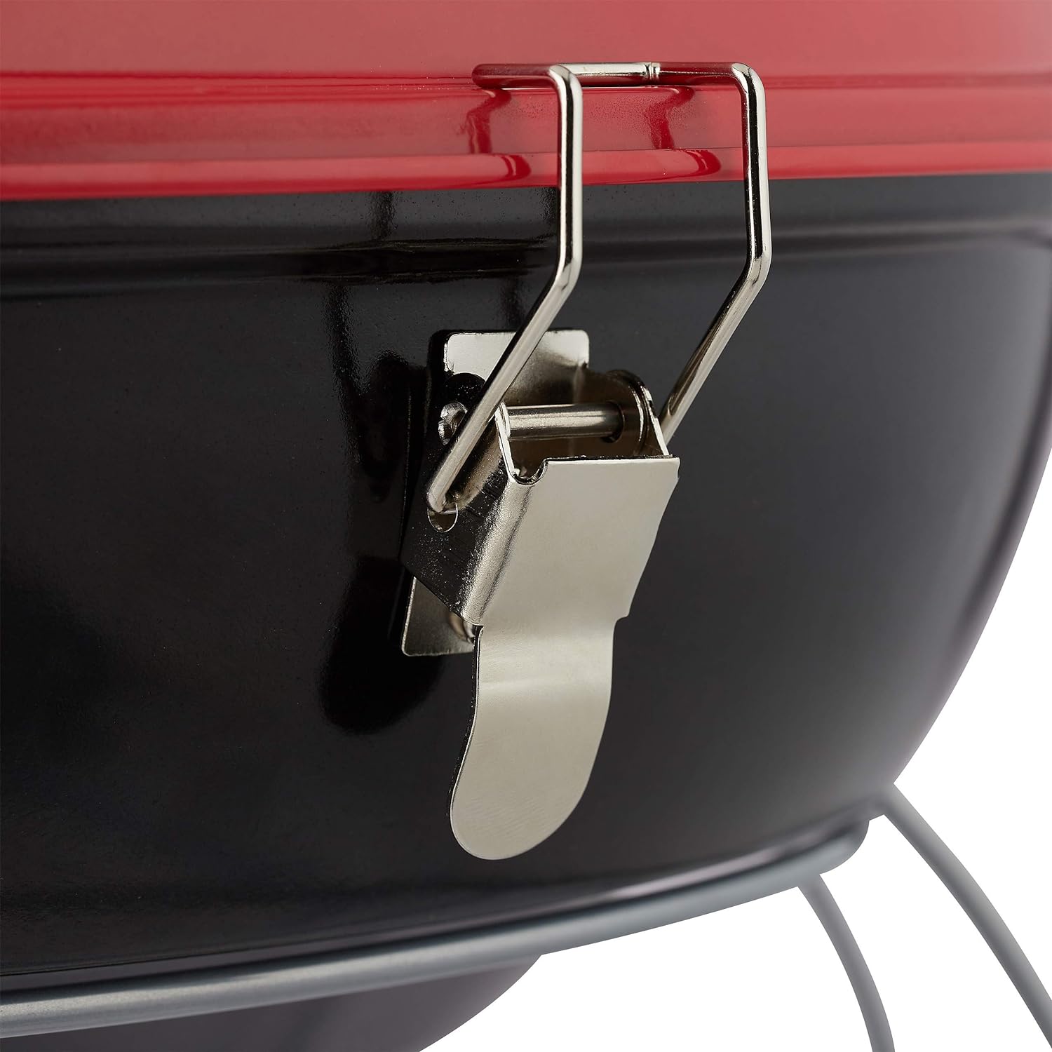 - Form: Holzkohlegrill mit D ca. 36 cm und fixierbarem Deckel in knalligem Rot - Kompakt und tragbar