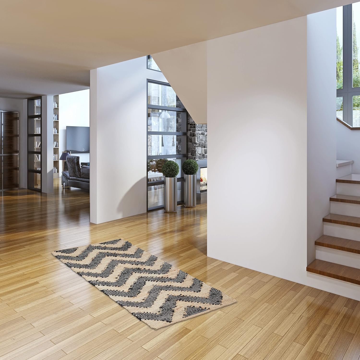 - Handgewebt: In Handarbeit gefertigter Flurteppich aus Jute und Baumwolle - Jedes Stück ein Unikat